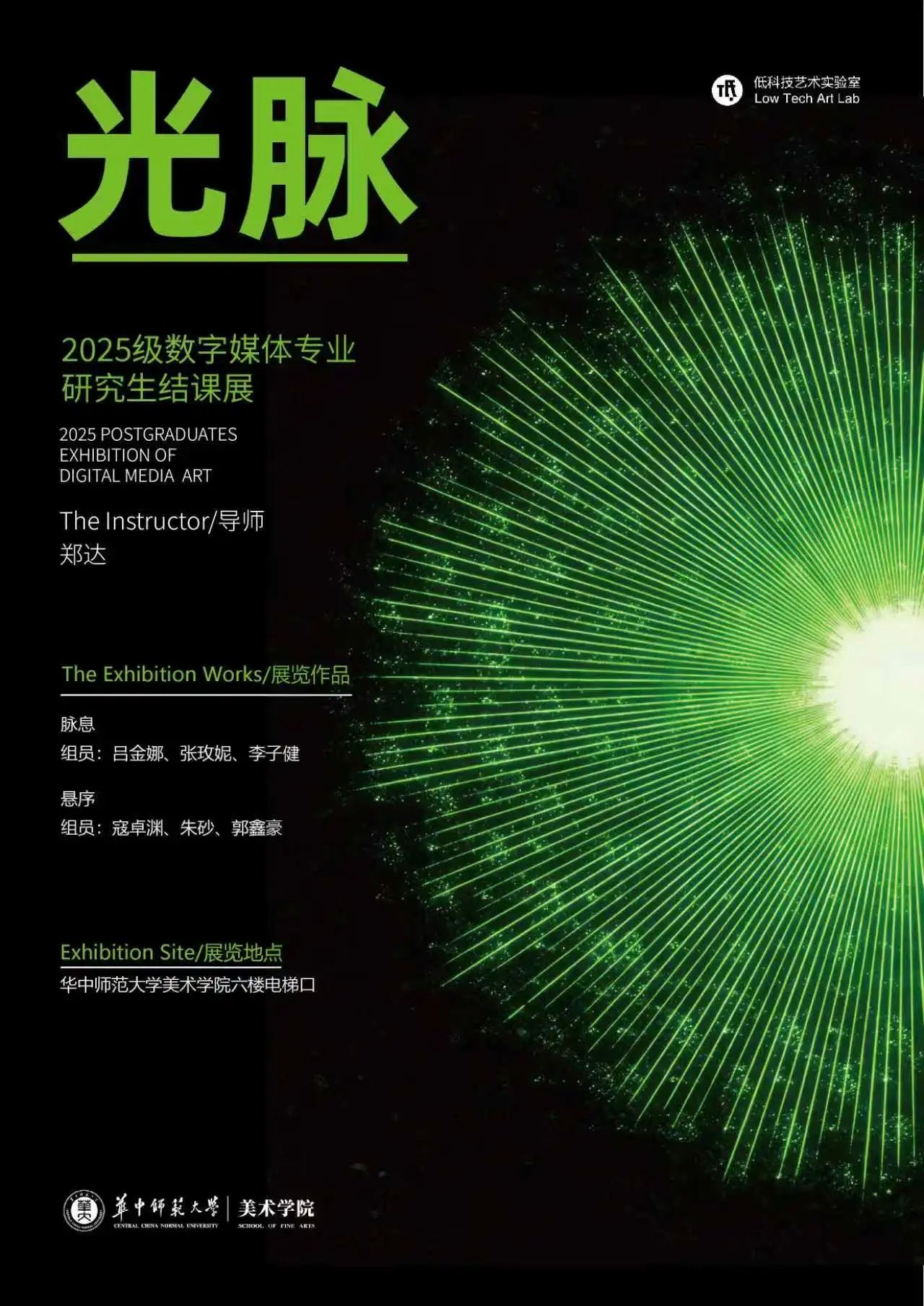 本次展览以“光脉”为题,聚焦“人与技术”以及“生命与光影”之间的关联与张力。展览主题的灵感源自于麦克卢汉的技术媒介论:技术并非仅仅是被人类使用的工具,而是一种具有自身演化逻辑的核心媒介,它会在不知不觉中重塑我们的感知方式与经验结构。从数据跃升到智能化发展的时代,科技以更隐形、更日常的形态渗入生活,我们被各类设备、数据与算法包围,对自身与世界的认知处于持续“重新编排”之中。因此,如何在技术高度浸润的环境中保持自我清醒、重新辨认感知的来源与边界,成为本次展览的出发点。