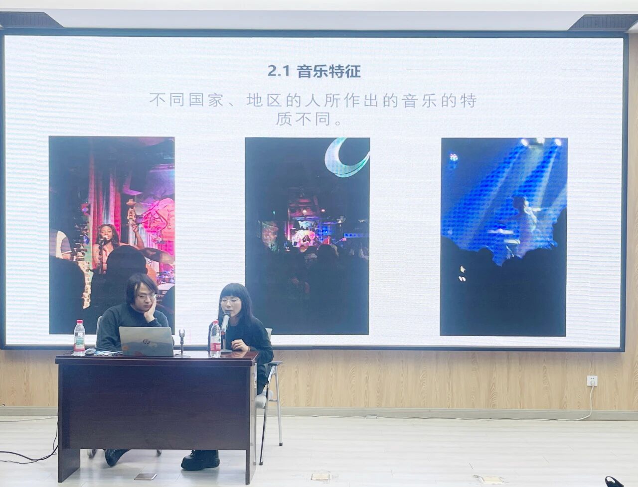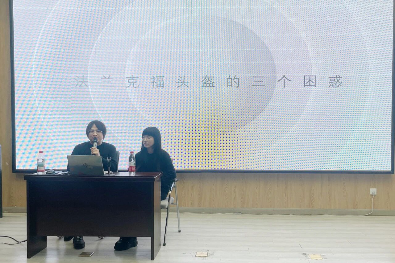 华大青年讯(通讯员 龚萍 吴怿苒)2026年4月22日,由华中师范大学美术学院主办的学术讲座《法兰克福头盔的三个困惑》在美术学院一楼报告厅圆满举行。本次讲座与美术学院本科《媒体空间艺术》课程深度联动,特邀知名电子乐队“法兰克福头盔”音乐人陈于飞、胡娟担任主讲嘉宾,华中师范大学美术学院郑达院长、武汉设计工程学院创新设计研究院涂清院长出席活动,讲座由美术学院龚萍老师主持。