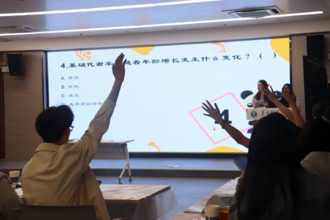 “健康饮食知识擂台赛”环节,团队们需抢答有关营养学、食品安全等方面的题目,如“基础代谢率随着年龄增长发生什么变化”。参与者们认真思考,积极抢答,不仅检验了自身的知识水平,还在交流中加深了对健康饮食知识的理解。