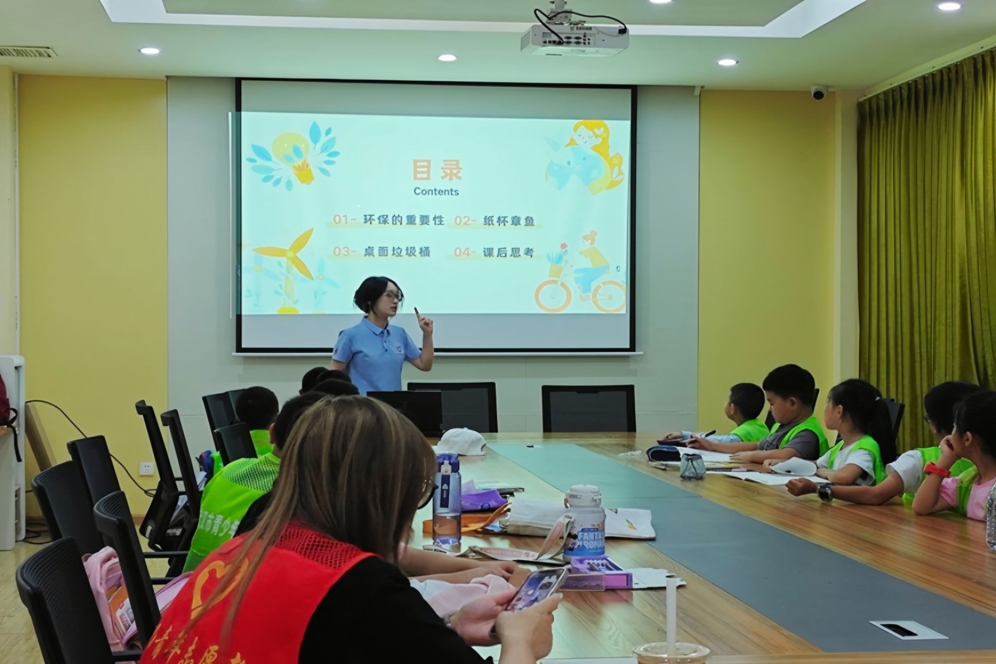 在《变废为宝》手工课中,实践队员严潇以互动问答切入,用生动的语言和贴近生活的例子为学生们讲解了环境保护的紧迫性和日常参与环保活动的重要性。