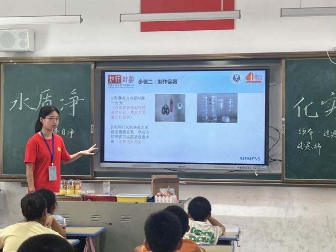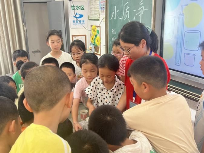 华大青年讯(通讯员 于继泓)为扩展学生关于水质净化方面知识,了解污染水源的相关危害,筑牢人与自然和谐共生的环保意识,7月22日上午,圣兵爱心社第二十五届爱心之旅上犹队队员黄粲云在江西省上犹县第五小学为同学们带来以“争做水质环保小卫士”为主题的水质实验课。本次实验课通过知识讲解、观察探究、小组实验等形式,取得了良好的教育成效。
