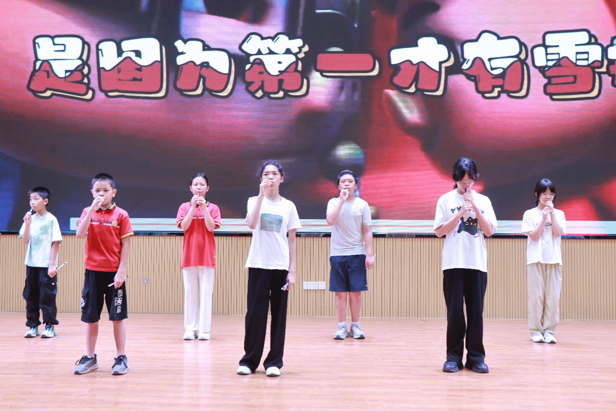 随后,夏令营的同学们为本次结营仪式带来了精彩的表演。自制乐器社团课全体师生用独特的“装备”带来吹奏《猪猪侠》。二班同学的《讲笑话》带来欢乐一刻;切换到悠扬的旋律,刘雅菲、曾佳棋两位同学踏着轻盈的舞步登场,展示舞蹈《最美的光》;一班同学演唱的的《苟活之重生(爱国版)》让人热血沸腾;四班同学呈现了一场激动人心的演讲——《人生是一场未知的冒险》,鼓励大家带着勇气踏上人生的航行。