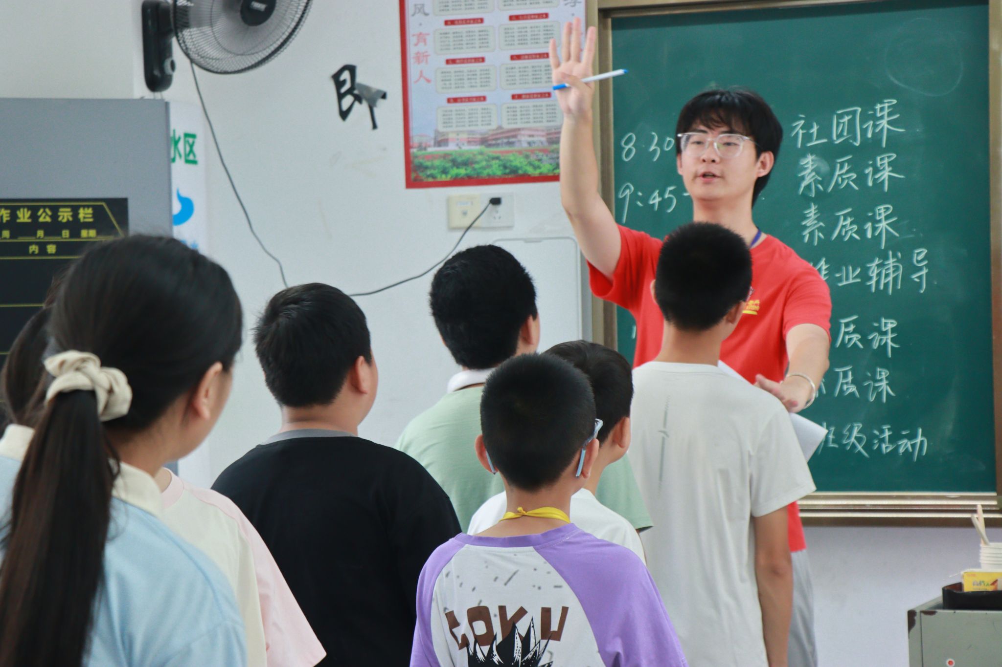 带着精心准备的课程和满腔热忱,队员们抵达实践地。初到异地,凯里队就面临授课对象临时变化的挑战,其他队伍也遇到不同困难,但队员们相互支持,灵活调整,最终成功克服,确保了教学活动的有效开展。调整之后,队员们在白天化身“小老师”,在课堂上倾囊相授,与孩子们互动交流。