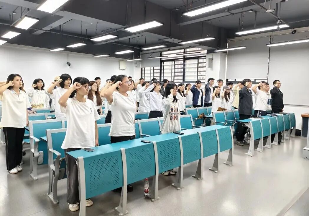 全体团员齐唱团歌,重温入团誓词。铿锵誓言回荡教室,彰显了团员们以青春之力守护国家安全的坚定信念。紧接着,团员们集体诵读了《中国共产主义青年团章程》相关章节,进一步强化团员意识与组织纪律观念。