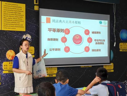 在此次工作中,洪山队主要负责两个社区的教学活动,因此成员们根据社区的实际情况进行了差异化的课程安排。大华社区的课程安排丰富,涵盖科普、国学、体育、心理等多个领域。其中,科普类课程尤为注重实验互动环节,例如通过汽水引入二氧化碳知识,利用树叶拓印观察植物结构。该社区的一大特色是开设了“法治启蒙”这类创新课程,通过小法官情景模拟的方式,向学生讲解平等理念。大华社区的学生学段主要为小学四至六年级,知识面较广,因此课程设计更加注重深度挖掘。