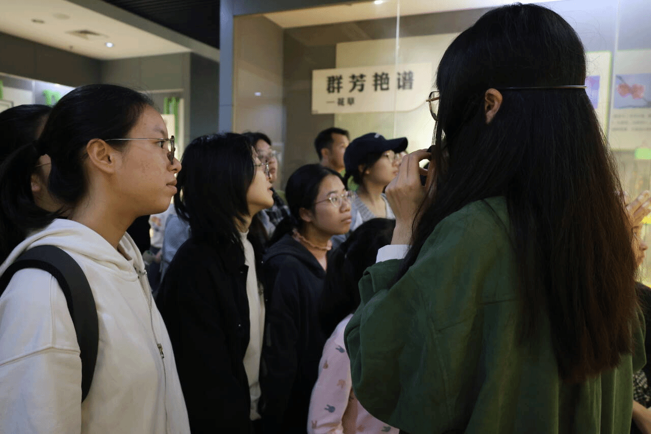 随后,党支部成员们走进“群芳艳谱展馆”,细致观察各类花卉标本。在讲解员的讲解中,大家得知不少植物已濒临灭绝、被列为国家级保护植物。成员们就保护自然环境和物种多样性的重要意义进行了集体讨论,这促进了思想碰撞与知识互补,并进一步密切了支部成员间的沟通联结,凝聚起团结协作、积极向上的支部合力。