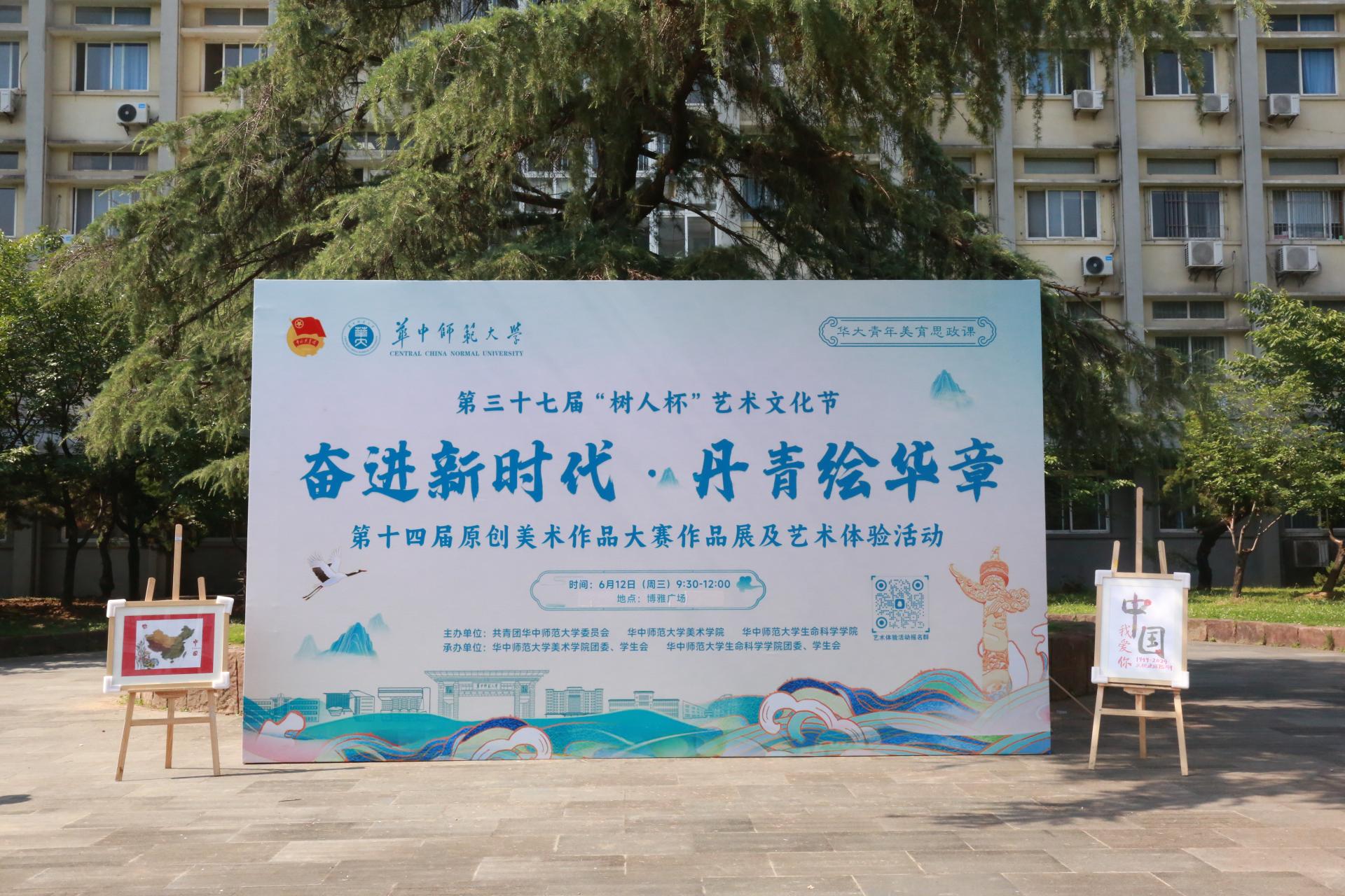 华大青年讯(通讯员 黄小润 赖翠娟 童帆)为庆祝中华人民共和国成立75周年,推动高校立德树人工程建设,用美育为时代新人培根铸魂,6月12日上午,生命科学学院与美术学院联合举办的第三十七届“树人杯”艺术文化节之“奋进新时代 丹青绘华章”第十四届原创美术作品大赛作品展及艺术体验活动于博雅广场开展。