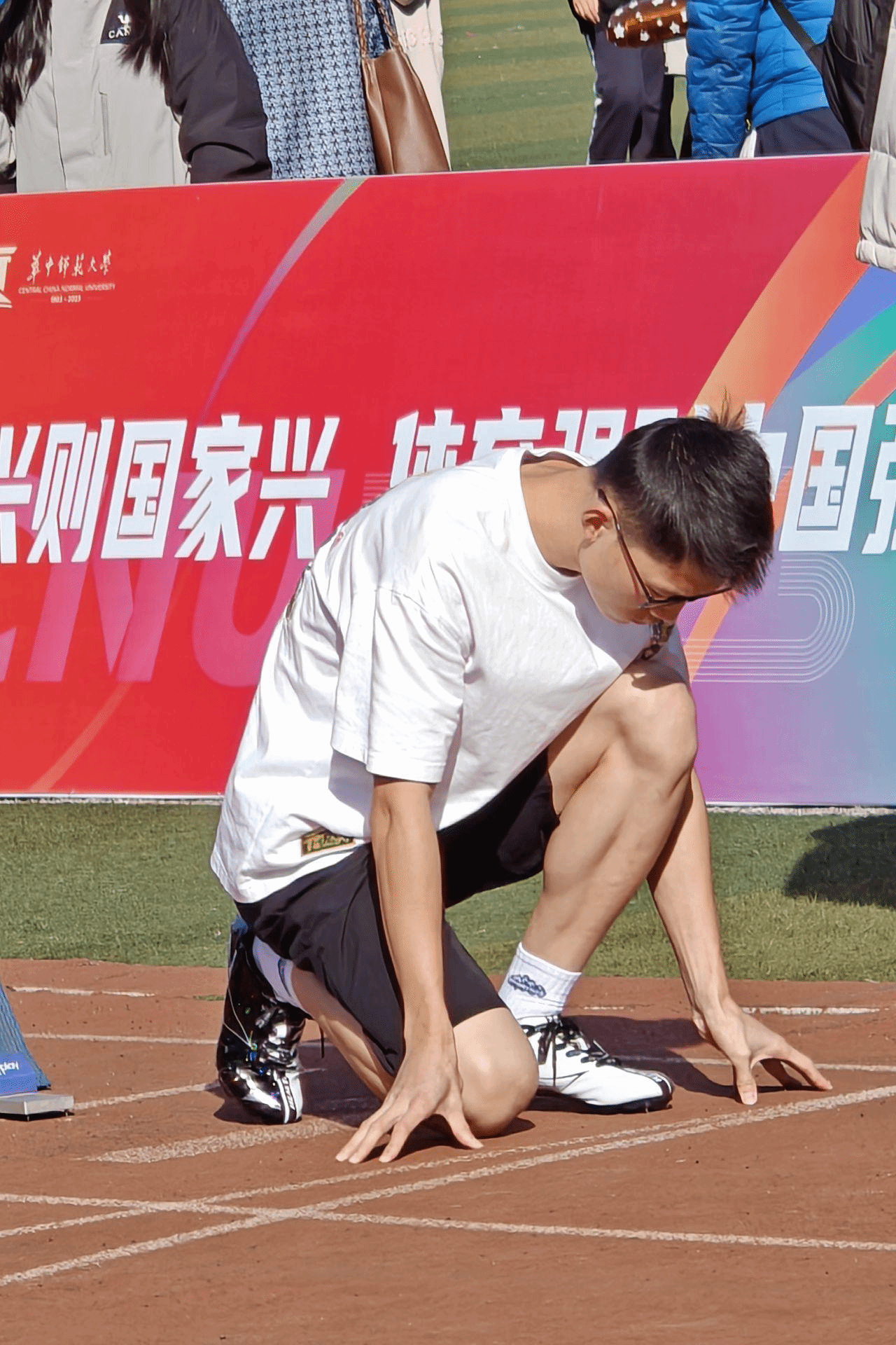 比赛开始前,余正通认真地做着热身。据了解,在比赛的前一周,尽管课业繁忙,但他几乎每天晚上都去操场训练,积极为比赛做准备。余正通认为,在短跑比赛中,起跑是很重要的,所以比赛前的几个夜晚,总能看见一个少年在佑铭体育场100米的起点不断地重复着起跑动作,以达到自己满意的状态。回到宿舍,他也会利用空余时间练习步频,他知道,唯有付出方有收获,正如他所说:“不练不厉害!”
