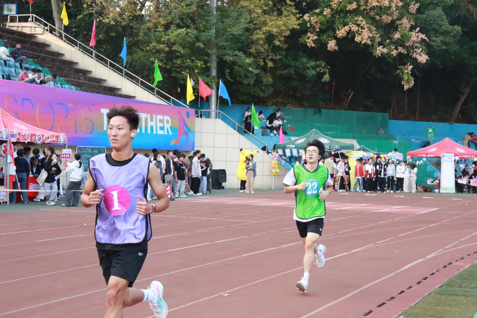 赛道旁,加油声此起彼伏。同学们组成的啦啦队拼命呼喊着选手们的名字,手中挥舞着彩旗,那一声声“加油”仿佛有着无穷的力量,激励着选手们在疲惫中继续坚持。男子1500米的赛场,是毅力与体能的较量,生科院的选手们用他们的行动诠释着坚持到底的体育精神。