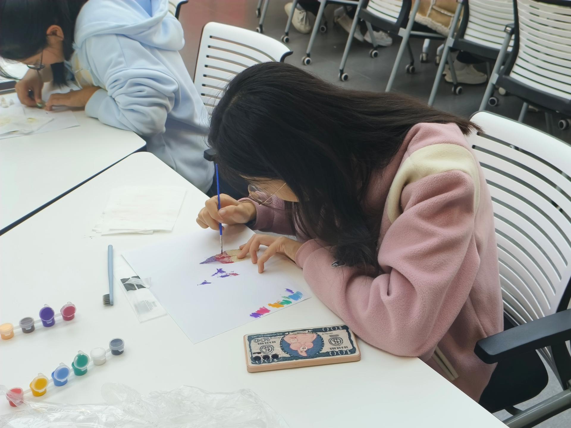叶脉书签制作活动吸引了各个学院的同学们积极参加。在现场工作人员的指导下,同学们有序挑选已经提前经过处理的树叶,小心地用刷子去除树叶叶肉。在全神贯注沿叶脉刷洗树叶的同时,同学们也感受着生命的脉络。不少同学还用画笔和颜料,为叶脉添上漂亮的色彩,在树叶上绘出有趣的图案,让自己的叶脉书签更加精美。