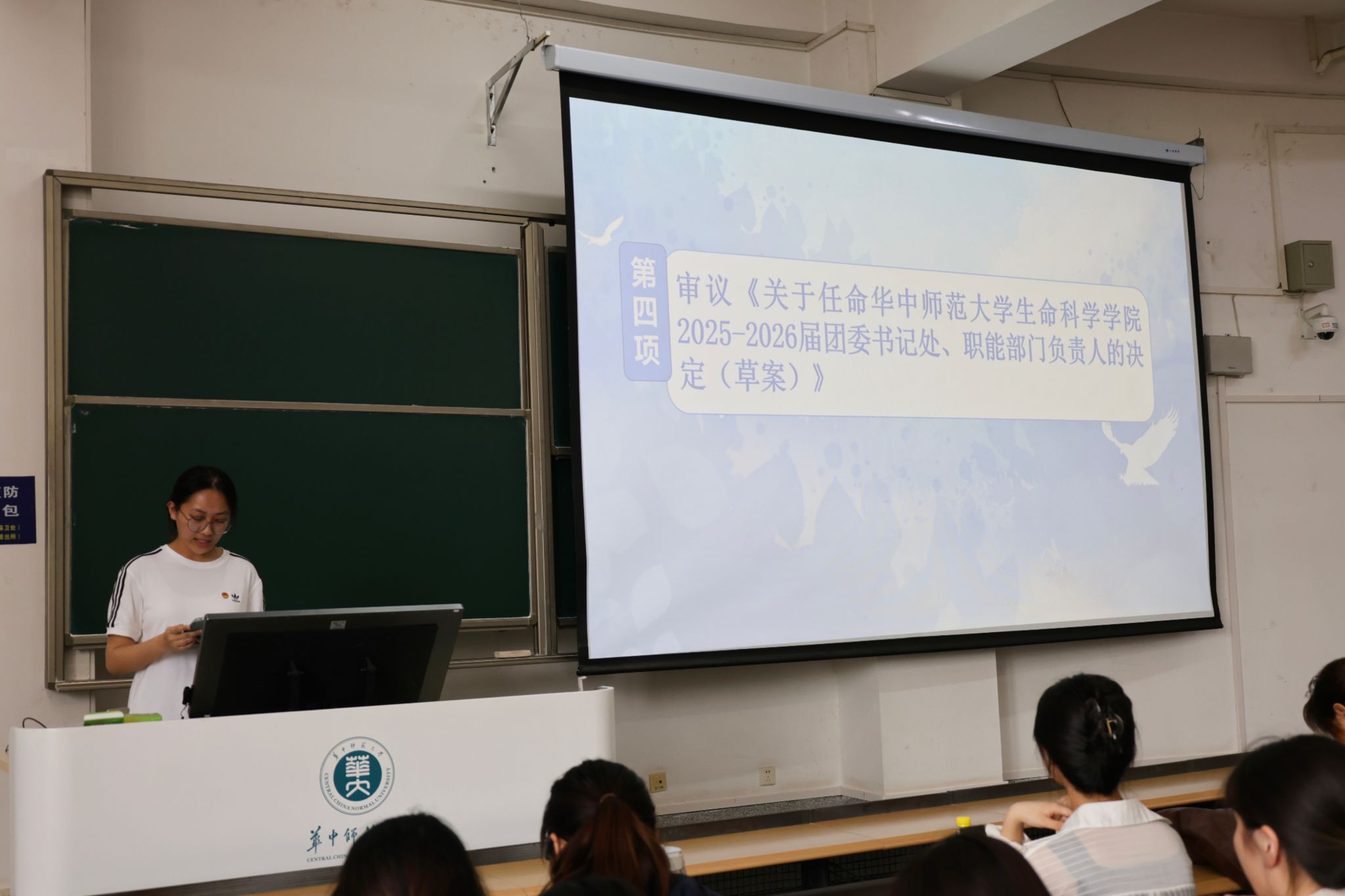 会议伊始,大会听取并审议了《关于组建华中师范大学生命科学学院 2025-2026届学生会常务代表委员会专门委员会的决定(草案)》《关于任命华中师范大学生命科学学院 2025-2026届学生常务代表委员会会长团、专门委员会负责人的决定(草案)》《关于任命华中师范大学生命科学学院 2025-2026届学生会执行委员会主席团、职能部门负责人的决定(草案)》《关于任命华中师范大学生命科学学院 2025-2026届团委书记处、职能部门负责人的决定(草案)》,均获与会代表表决通过。