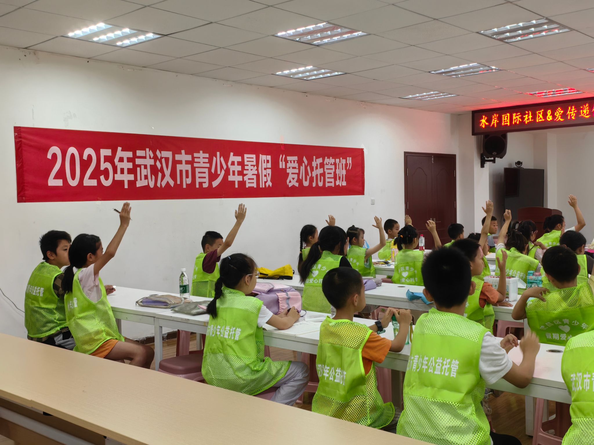 华大青年讯(通讯员 胡敏佳 郭子佳 黄小润)7月7日,华中师范大学生命科学学院偕行筑梦团武昌队志愿者在茶港、知音、金沙、水岸国际青少年空间及长城汇楼宇红领巾学堂五个点位,顺利开展2025暑期爱心托管班开班式活动。