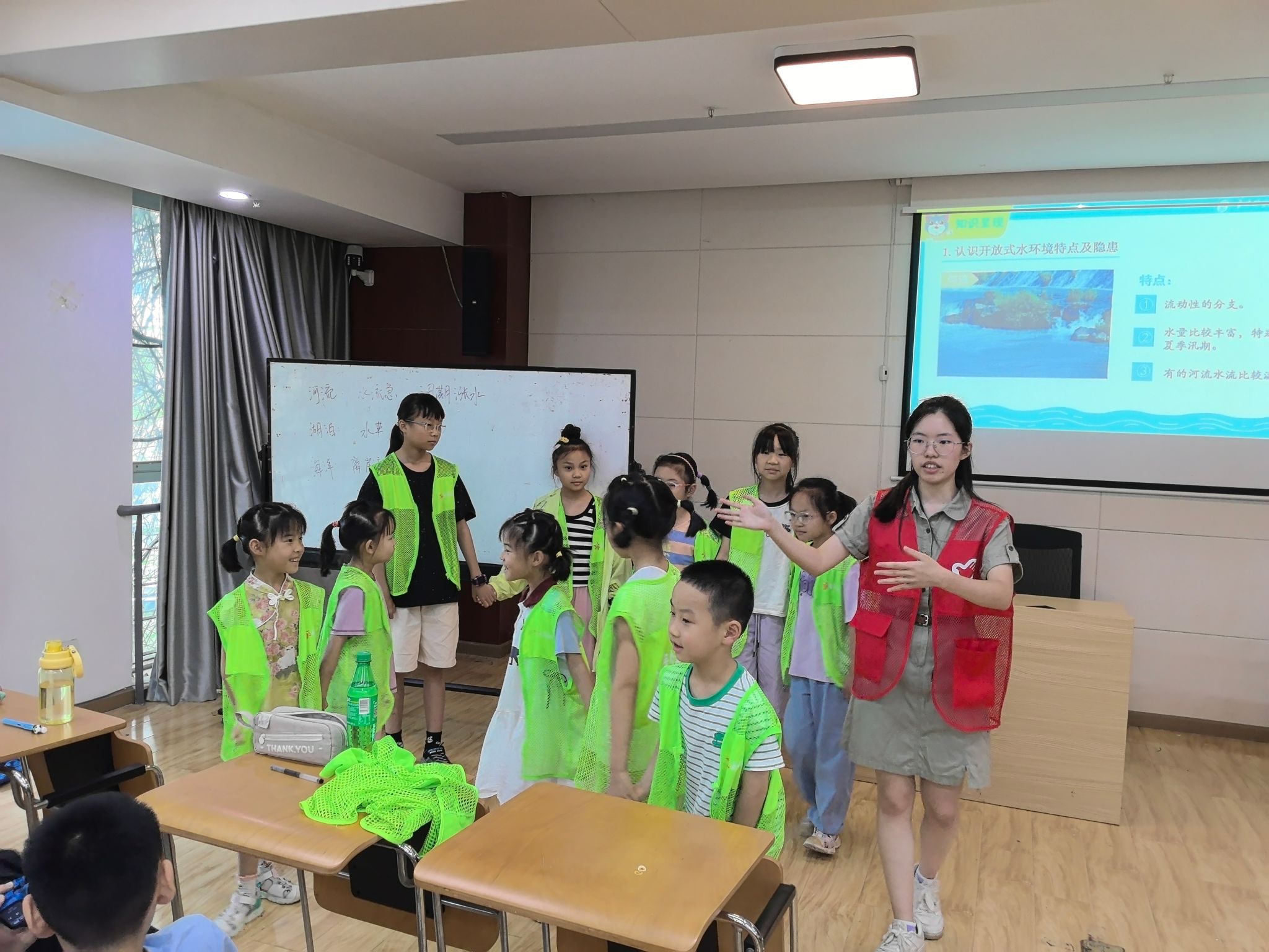 在水岸国际青少年空间,志愿者郭子佳通过真实案例切入,结合简短视频引导孩子们共同探讨“溺水是什么”,清晰界定了溺水的概念。她以趣味问答的形式,层层剖析了导致溺水的常见原因,学员们在热烈讨论中充分认识到,看似平静的水面下可能危机四伏。