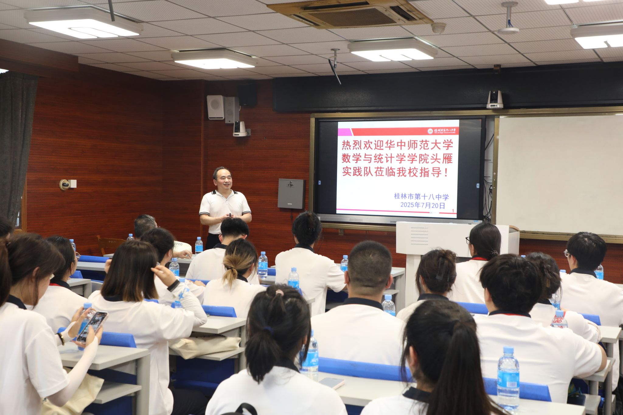 华大青年讯(通讯员 何欣雨 孙绍宸)为传承教育薪火,引导广大青年学子在社会实践的“大思政课”中感悟教育初心、践行育人使命,7月19日至21日,数学与统计学学院(以下简称“数统”)头雁实践队(以下简称“实践队”)在指导老师胡一心、林诗芸的带领下,踏上了一场名为“教育”的青春长征。实践队在华师校史馆触摸教育历史,寻找学校抗战南迁中的教育微光;在桂林市第十八中学采访优秀校友,追随教师典型的初心力量;在桂林市二附实验学校的头雁讲堂上,绽放耀眼青春风采。