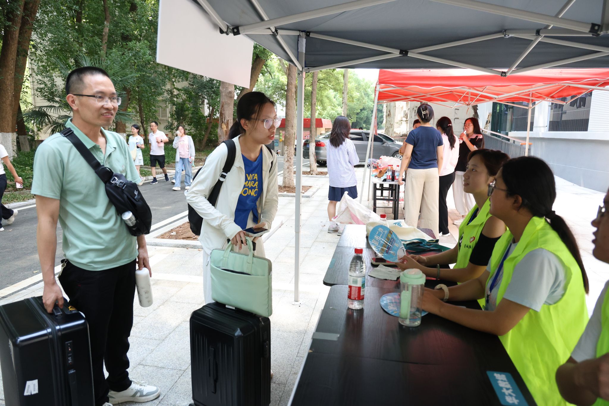 华大青年讯 (通讯员 陈思宇 黄金彪 )金秋九月,丹桂飘香。9月4日,数学与统计学学院青年志愿者协会(以下简称“数统青协”)在东区学生宿舍4栋、8栋及国际文化交流学院2号教学楼正门开展楼栋迎新志愿服务活动。32名志愿者化身“暖心护航者”,用耐心答疑、热心指路、贴心帮扶的实际行动,为2025级新生及家长搭建起顺畅的入学桥梁,让初入校园的学子深切感受到数统大家庭的关怀与温暖。