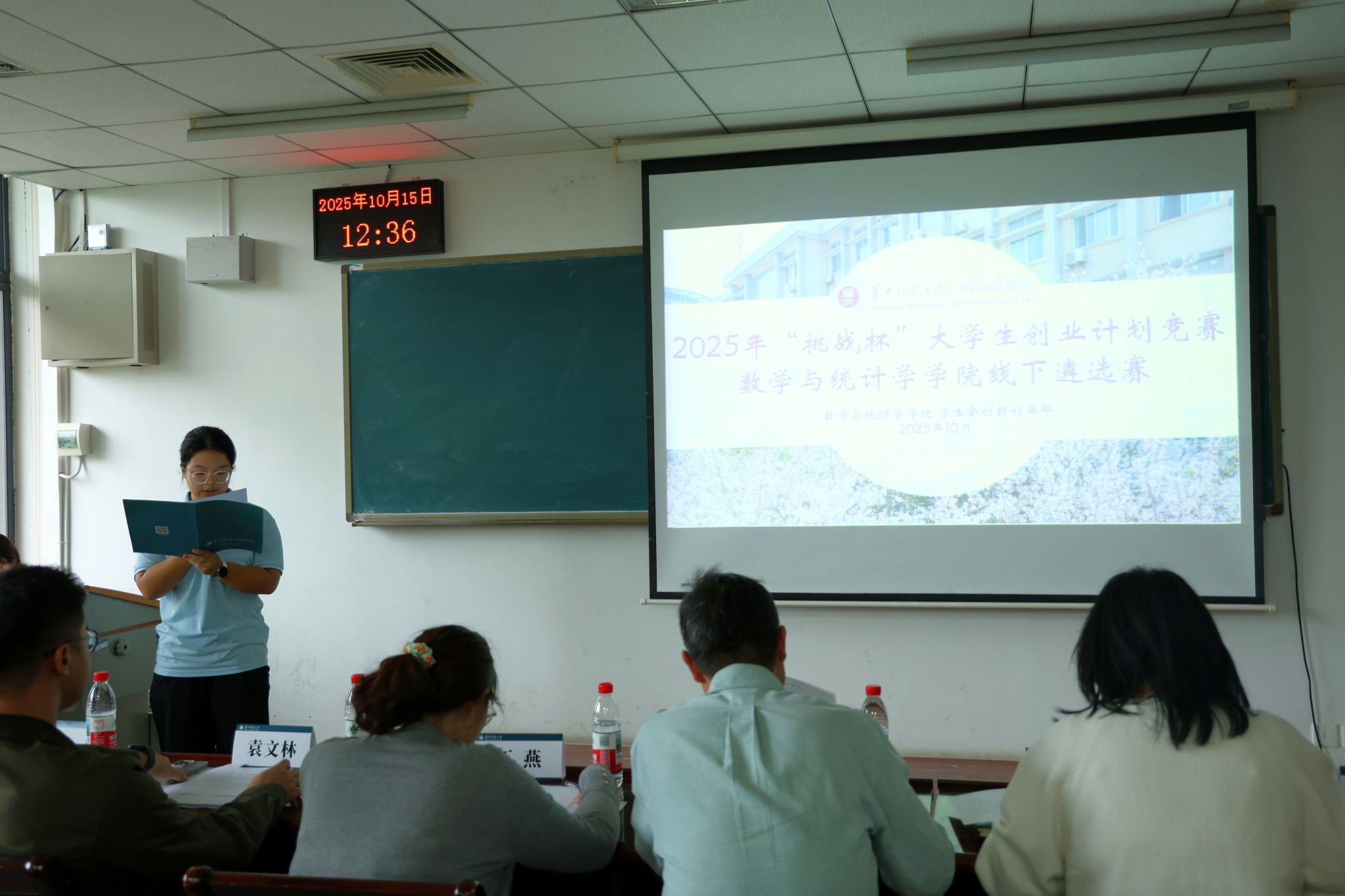 华大青年讯(通讯员 谷嘉蓉)为激发大学生创新活力,培育创业实践能力,营造浓厚的校园创新创业氛围,10月15日中午,2025年“挑战杯”大学生创业计划竞赛数学与统计学学院(以下简称“数统学院”)院内遴选赛于国际文化交流学院3号教学楼C508教室举行。计算机学院团委书记肖克,公共管理学院团委书记张子规,政治与国际关系学院团委书记袁文林,数统学院专任教师王燕、张国,团委副书记曾爽出席本次活动。比赛由数统学院学生会创新创业部负责人王宏鑫主持。