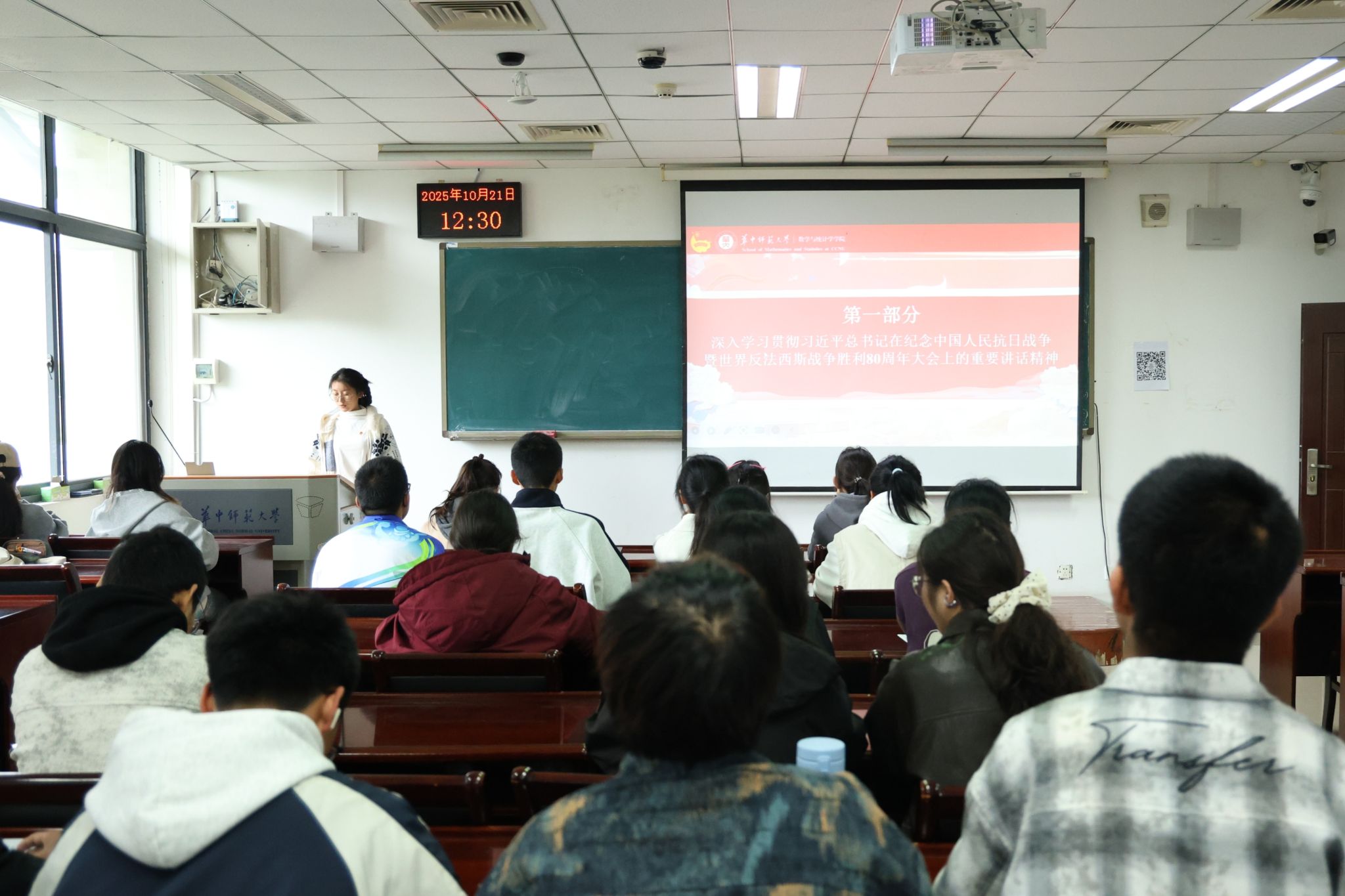 会议伊始,张串串带领同学们深入学习习近平总书记在纪念中国人民抗日战争暨世界反法西斯战争胜利80周年大会上的重要讲话精神。同学们深刻领会“铭记历史、缅怀先烈、珍爱和平、开创未来”的核心要义,明确要传承伟大抗战精神,为推进中国式现代化建设凝聚力量。