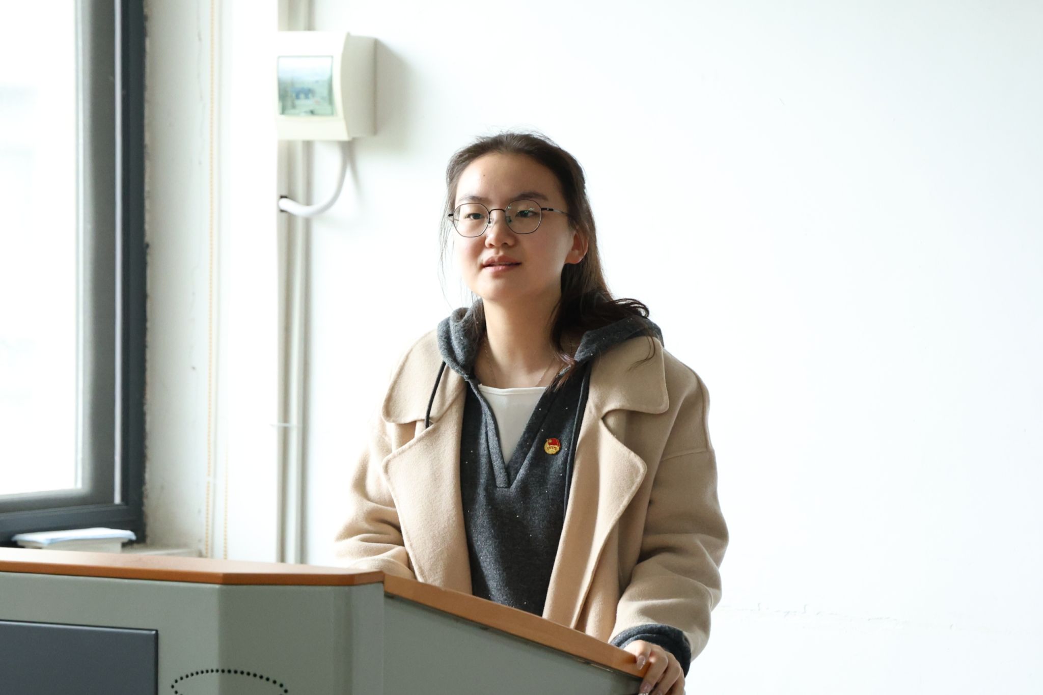李梦睿在发言中详细讲解了团支部工作手册的使用方法,并嘱咐新一届团支书按照要求规范组织生活。随后她提出各团支书要做青年担当的“领头雁”,将会议精神转化为支部活动的具体举措,带领团员在学习中强本领、在实践中显担当,让青春的脚步与国家发展同频共振。