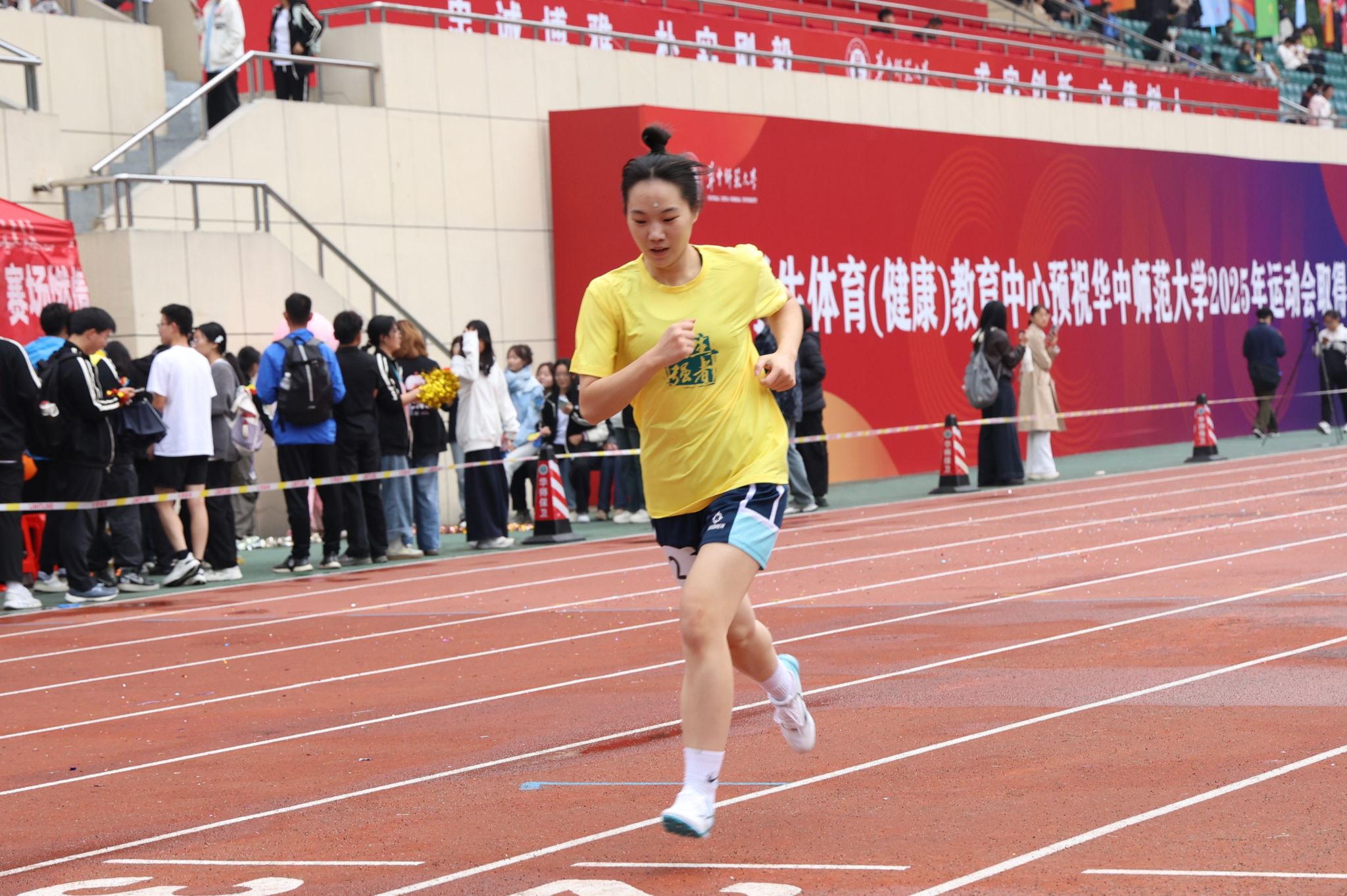 华大青年讯(通讯员 谷嘉蓉 张子萱)10月30日,华中师范大学2025年运动会在佑铭体育场拉开序幕。数学与统计学学院(以下简称“数统”)研究生汪点月在女子400米项目斩获第二名。她用坚韧诠释热爱、用执着书写担当,尽显数统学院“做人生强者,为数院争光”的运动风采。