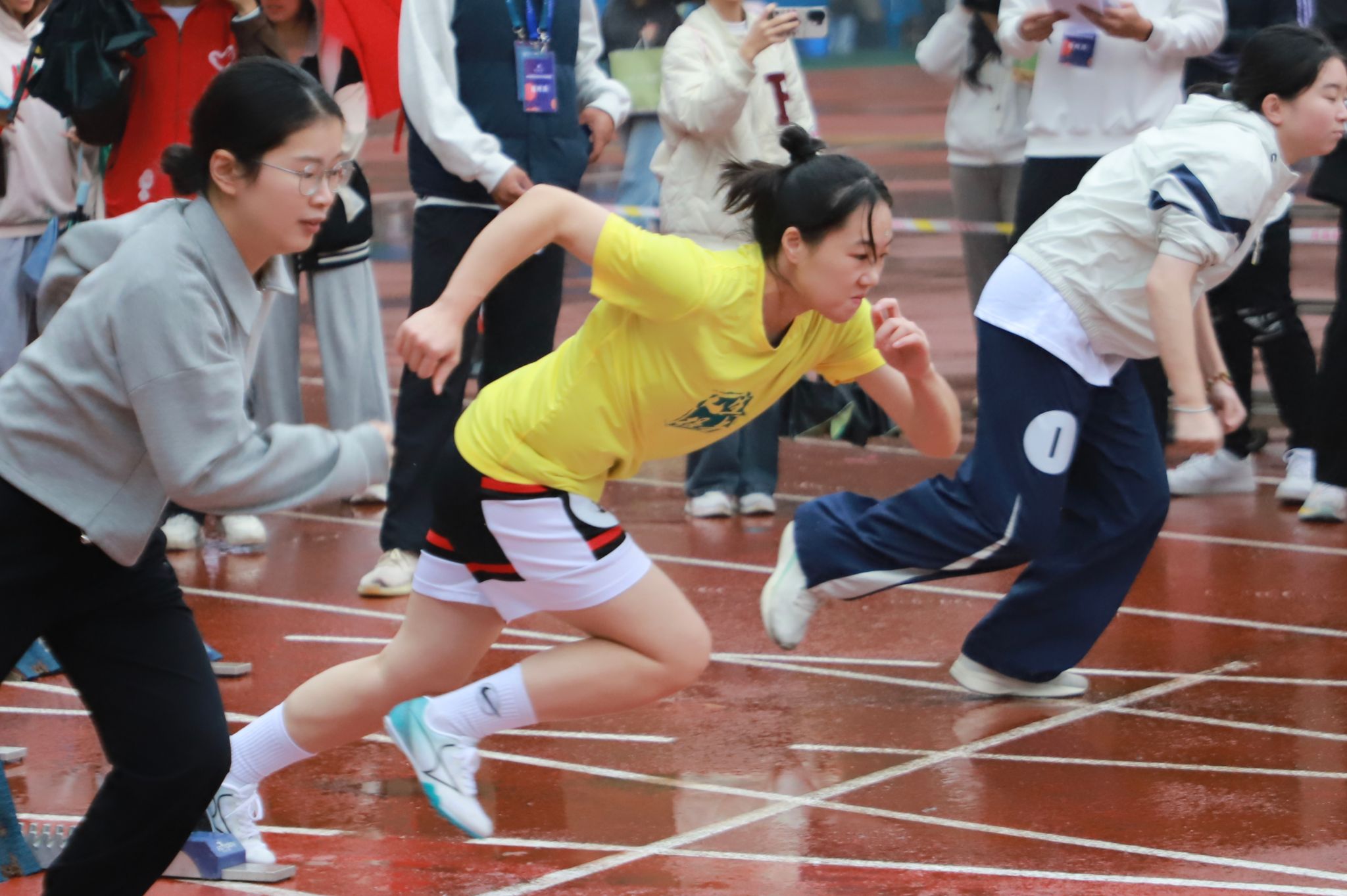 除了篮球赛场外,汪点月在田径赛道上同样展现出不服输的劲头。校运动会中,她在女子100米、400米两个项目中直面不同维度的速度与耐力考验。女子100米赛道上,她反应迅速、起跑迅猛。意外摔倒这一突发状况并未浇灭她的斗志,她带着未消的痛感与不服输的韧劲,在下午的400米赛道上再度启程。赛道上,她稳控节奏、弯道蓄力、直道加速,现场助威声为其注入满满动力,最终以稳健姿态冲过终点线,斩获第二名。