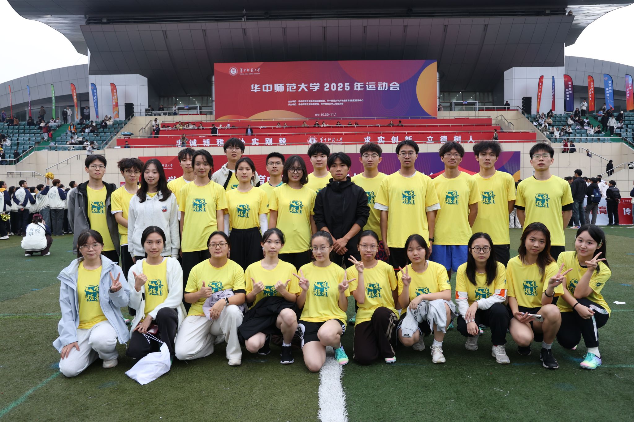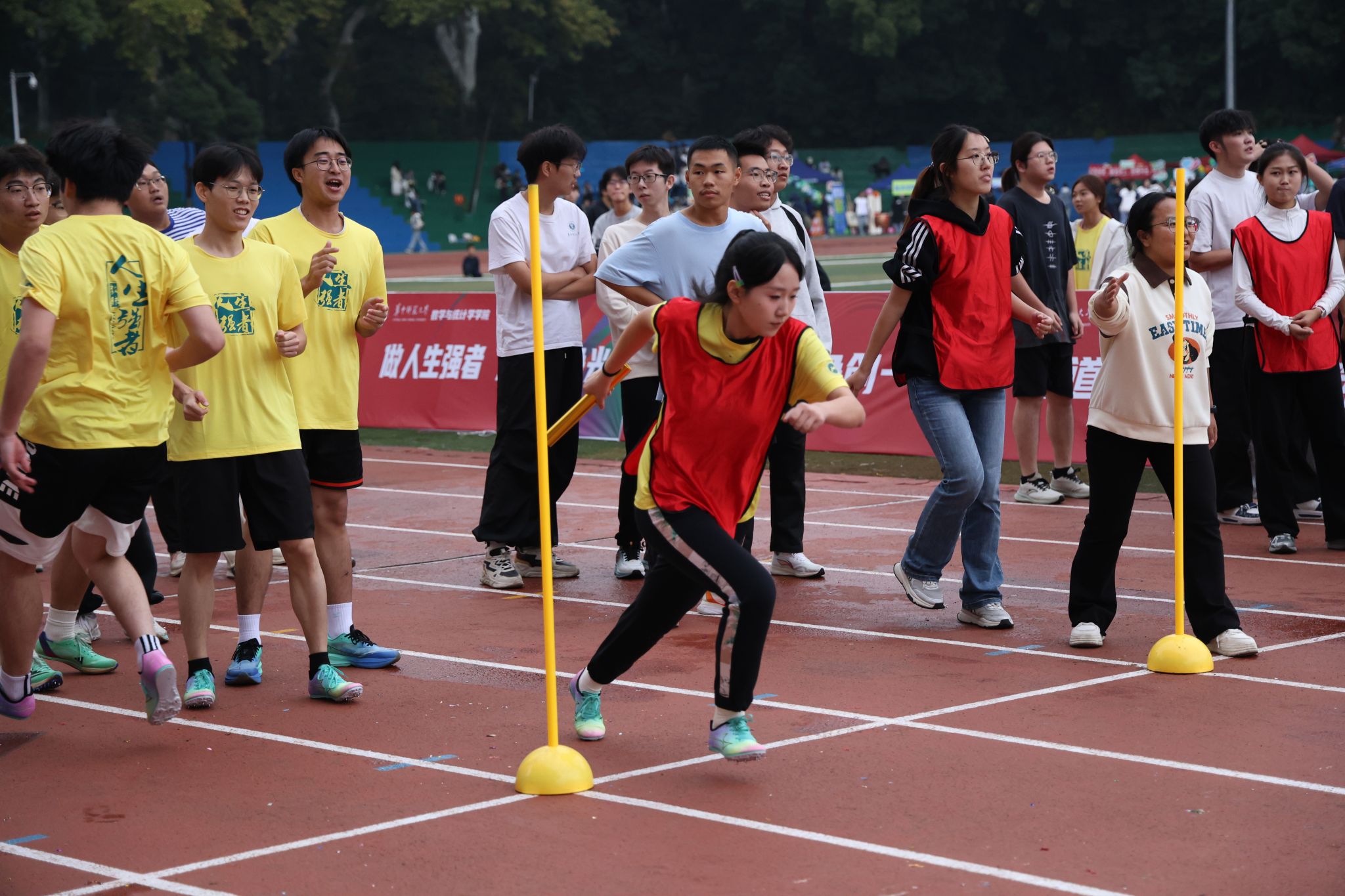 华大青年讯(通讯员 杨雅妍 唐睿 严起娟)10月30日,华中师范大学2025年运动会50米迎面接力比赛于佑铭体育场举行。数学与统计学学院(以下简称“数统”)选手在比赛中以2分33秒的成绩,斩获团体第一名的佳绩。