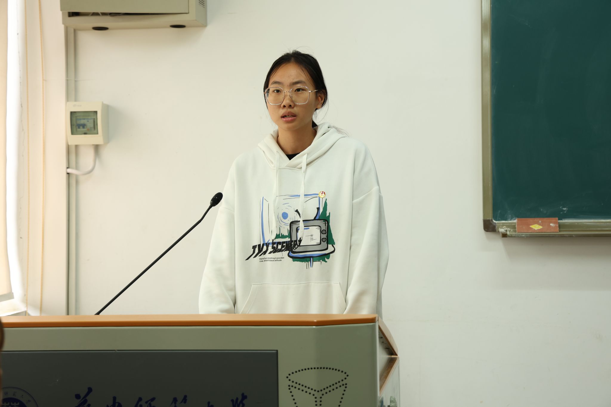 同时,蒋家晴结合第十届全国学生“学宪法 讲宪法”活动普及法治思想,强调尊法、学法、守法、用法的责任担当。她紧扣我国科技实力飞跃的发展态势,激励数统学子立足专业所学,为新质生产力培育贡献青春力量。此外,她明确本月团日活动四大主题方向,阐述活动开展的注意事项,并规范团日活动材料提交要求。邓清秋聚焦志愿服务工作,详细介绍数统学院十一月份团支部志愿服务活动的录取标准、申报流程及所需材料清单,为各团支部参与竞标提供清晰指引,助力志愿服务活动有序开展,激发同学们的参与热情。