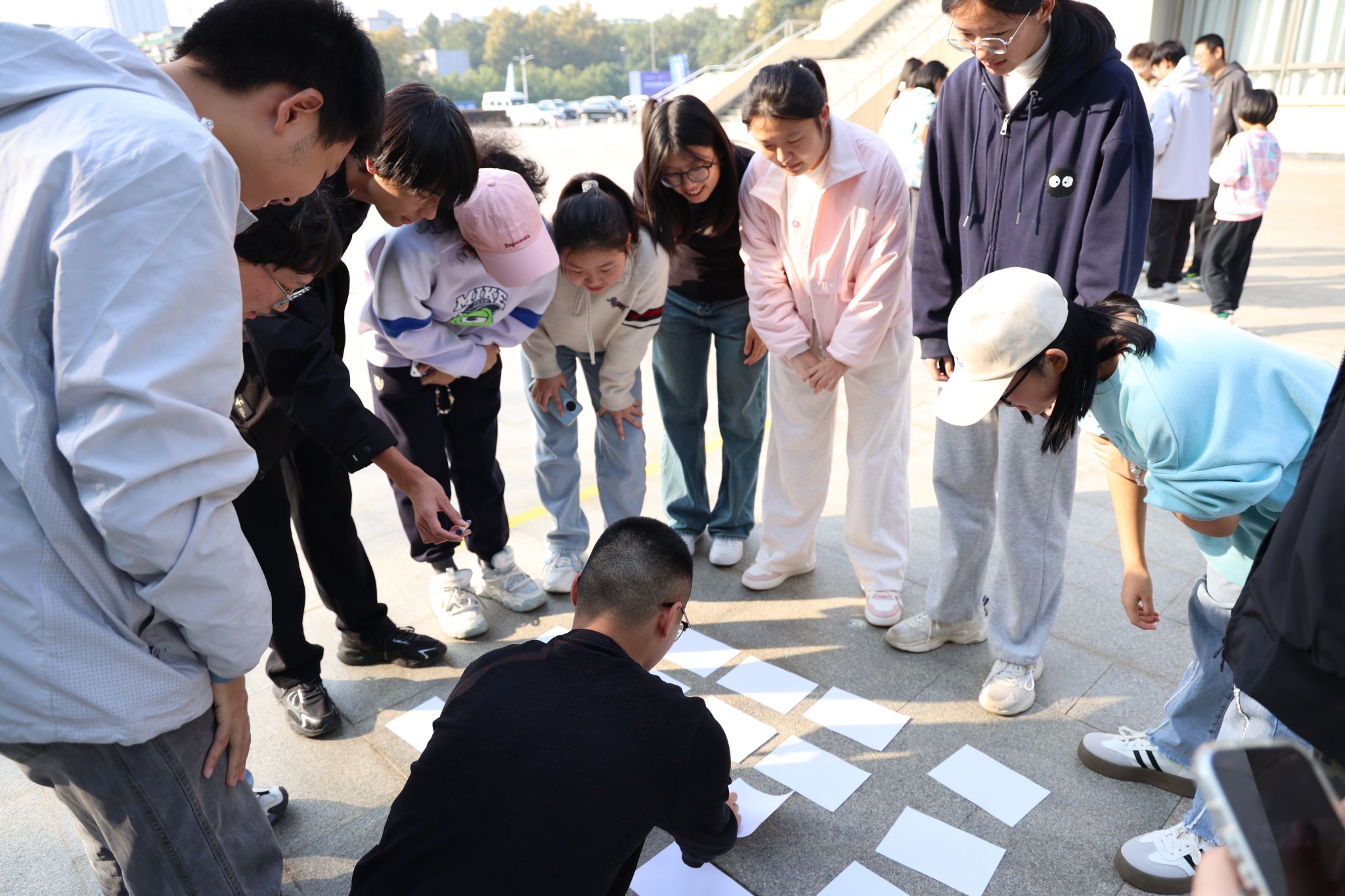 本次活动围绕“消费无‘陷’,权益在线”的主题,以小组竞赛形式展开。活动设置破冰活动与常规赛两大环节,其中常规赛涵盖“你蹲了吗?”“千里传音”“智慧匹配”“情景猜猜乐”“齐心共绘”五个游戏项目。“你蹲了吗?” 项目中,各小组展开趣味互动,同学们在轮换应答的热闹氛围中快速熟络。“千里传音”“智慧匹配” 聚焦团队协作,通过信息接力加深团队默契,以指尖联动凝聚团队精神。“情景猜猜乐” 依托 “网购退货维权” 等生活场景的肢体演绎,让同学们在参与过程中掌握侵权陷阱的识别方法与应对思路。