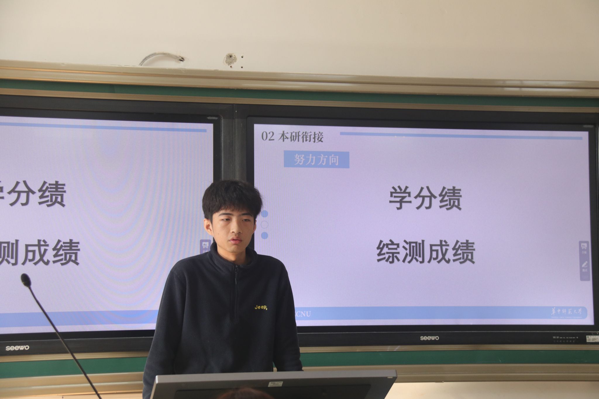 陈煦韬则分享了自己在厦门的实习经验:详解学分绩与综测成绩的规划要点并推荐了实用选修课;特别强调大学解析几何与高中圆锥曲线内容的衔接性,建议同学们重视学科知识的贯通学习。随后他讲解了教育实习的准备方向,涵盖教学工作、班级管理、教育调研三方面的筹备重点,尤其提醒备课阶段尽量准备逐字稿,同时要在教学中注重培养学生的直观想象能力。