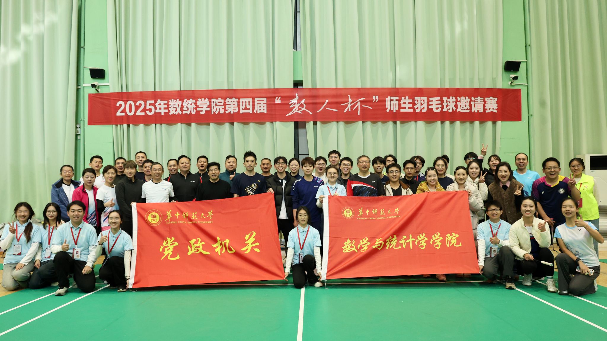 华大青年讯(通讯员 刘紫敏 章钧淇 刘金钰)为充分发挥体育育人功能、搭建师生交流平台,12月7日,由华中师范大学大学生体育健康(教育)中心主办,数学与统计学学院(以下简称“数统学院”)工会、团委、学生会承办,数统学院羽毛球队协办的第四届“数人杯”师生羽毛球邀请赛在乒羽中心二楼顺利举行。华中师范大学校长彭双阶、中南财经政法大学副校长覃红、华中师范大学副校长周鹏程、世界冠军杜玥、全国冠军张维伊、全运会女团冠军华晓蓓及学校各职能部门领导、老师和数统学院师生共计近60人出席本次活动。