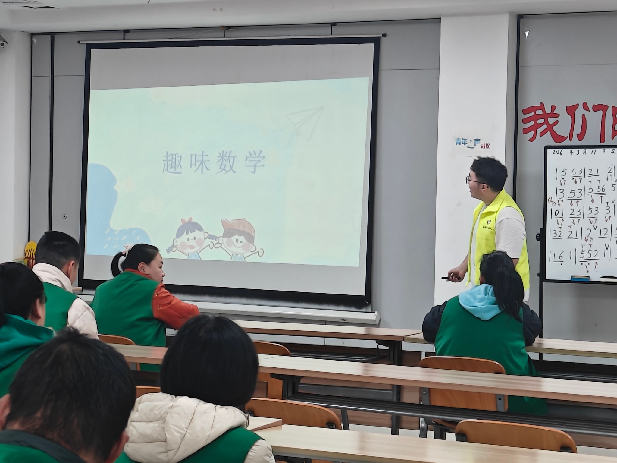 随后,趣味数学课堂正式开讲。志愿者结合残障朋友们的接受能力,摒弃枯燥的理论讲解,将数学知识融入“数字找朋友”“趣味速算”等互动游戏中,带领大家探索数字规律、锻炼逻辑思维。同时结合人民币换算、物品数量统计等生活实例,讲解数学在日常生活中的实用价值,并根据大家的接受能力差异耐心指导、鼓励积极互动,让课堂氛围热烈欢快。大家在轻松愉悦的氛围中收获知识、提升能力,切实感受到数学的趣味与温度。