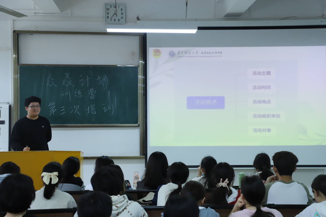 至此,数统学院“众焱计划”训练营第三次团干培训结束。此次培训加深了负责人们对撰写活动策划书的认识,提升负责人们撰写策划书的工作技能,为之后团学工作的有序开展以及各部门之间的协调活动打下了坚实的基础。