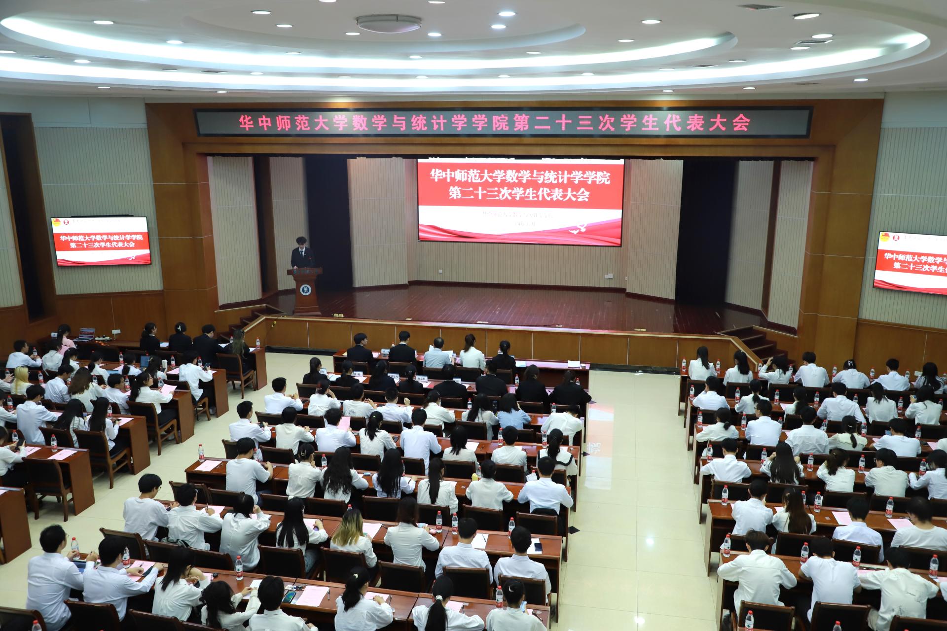 华大青年讯(通讯员 孙绍宸)5月24日晚,数学与统计学学院(以下简称“数统学院”)第二十三次学生代表大会在科学会堂一楼报告厅召开。数统学院党委副书记杨可军,校学生会主席团成员多子旋,数统学院团委书记林诗芸、团委副书记胡一心,数统学院团委、学生会2023-2024届主要学生干部及各年级本科生代表参加本次大会。会议由数统学院第二十二届学生会主席团成员肖宇主持。