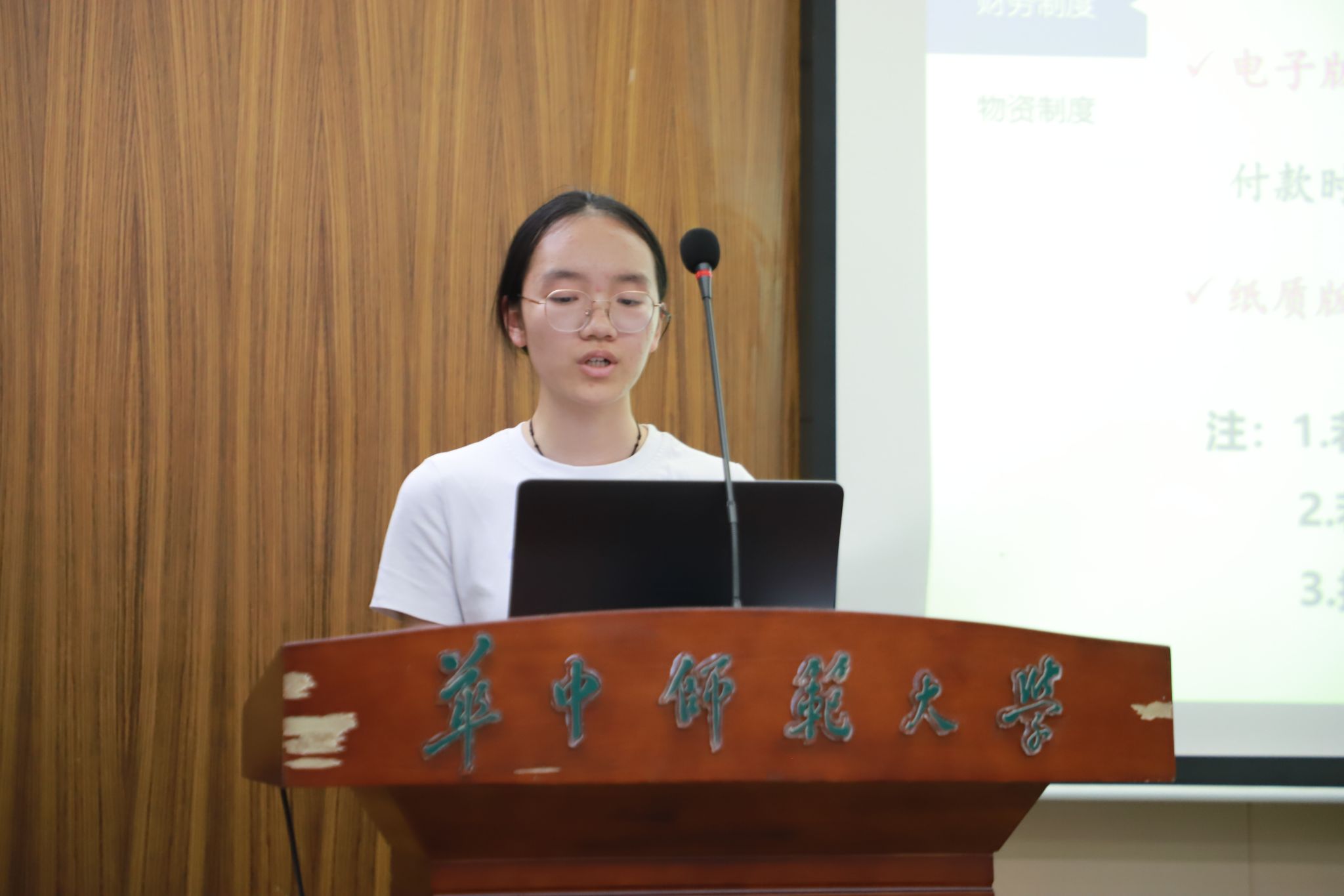 培训伊始,覃淑娴围绕数统学院团委、学生会财务制度展开详细讲解。她从报销材料的具体细则入手,对发票信息的规范性、报销流程中的注意事项等内容进行阐述。在物资制度方面,覃淑娴深入讲解物资申请流程,从物资需求的提出、审批到采购、管理和使用等方面进行全面且清晰的说明。通过她的讲解,同学们对财务制度和物资借用有了更深入的认识,为日后高效开展活动奠定基础。
