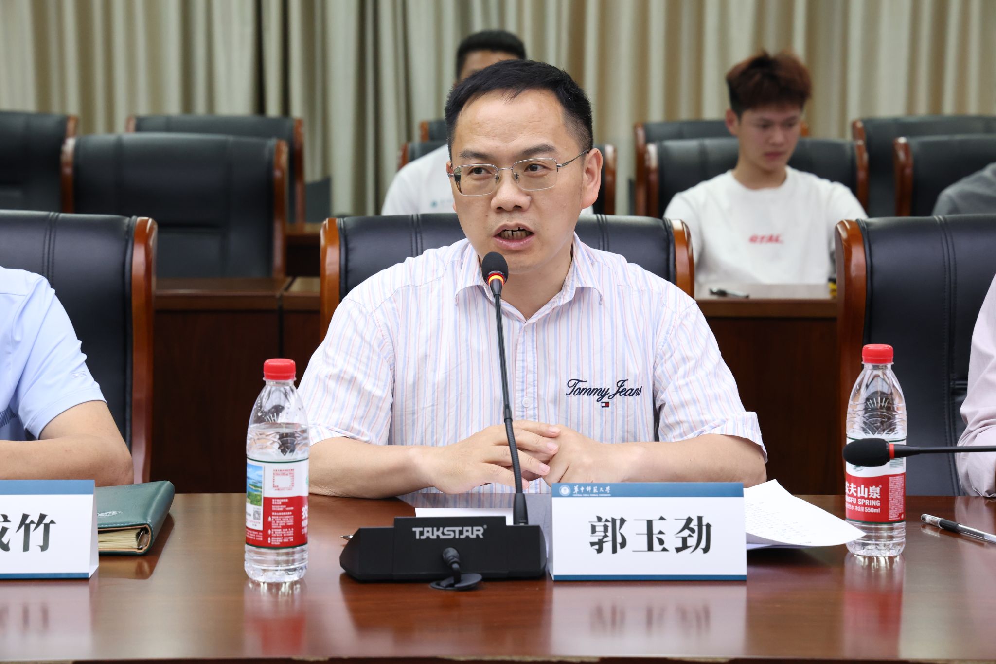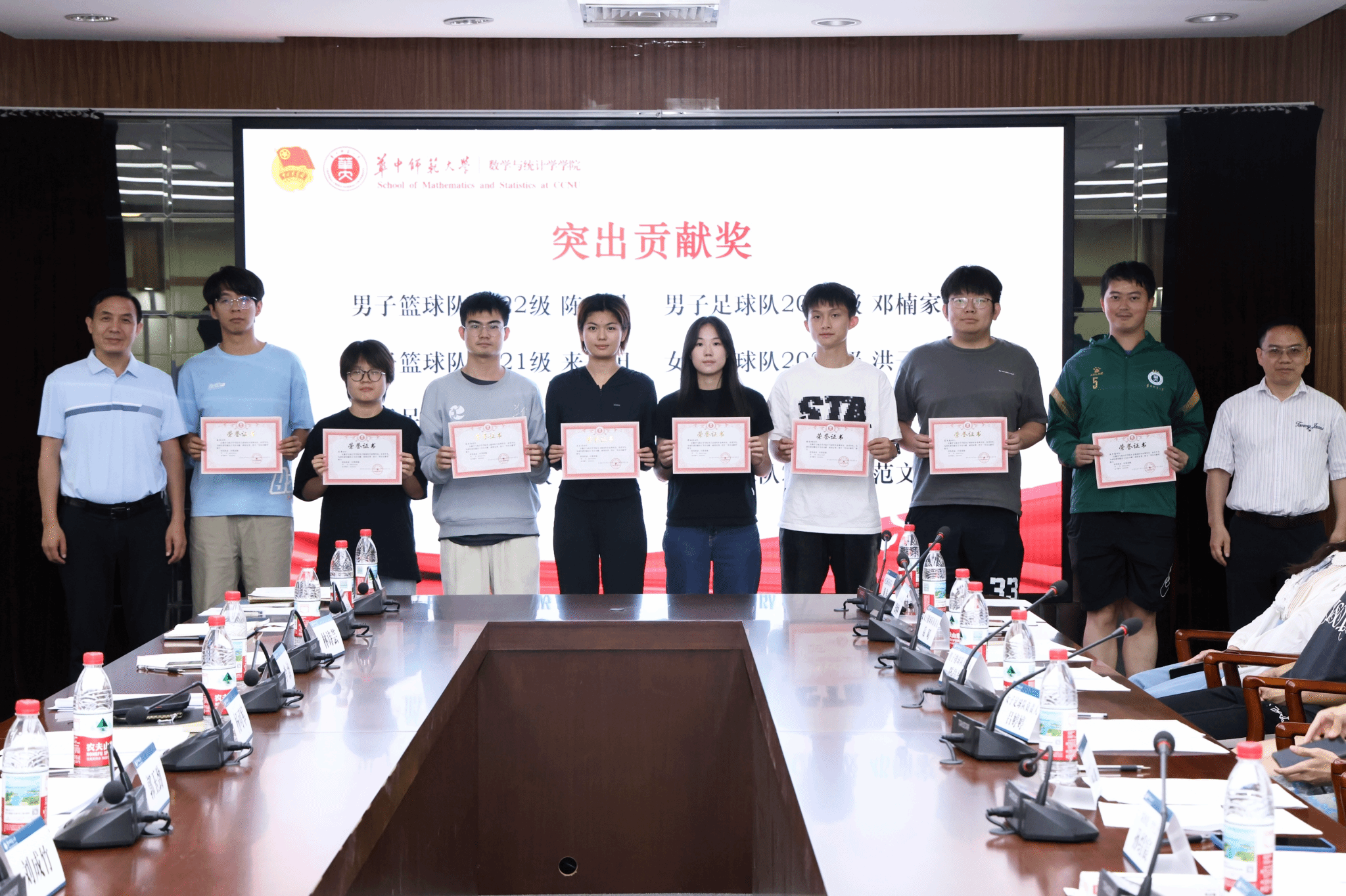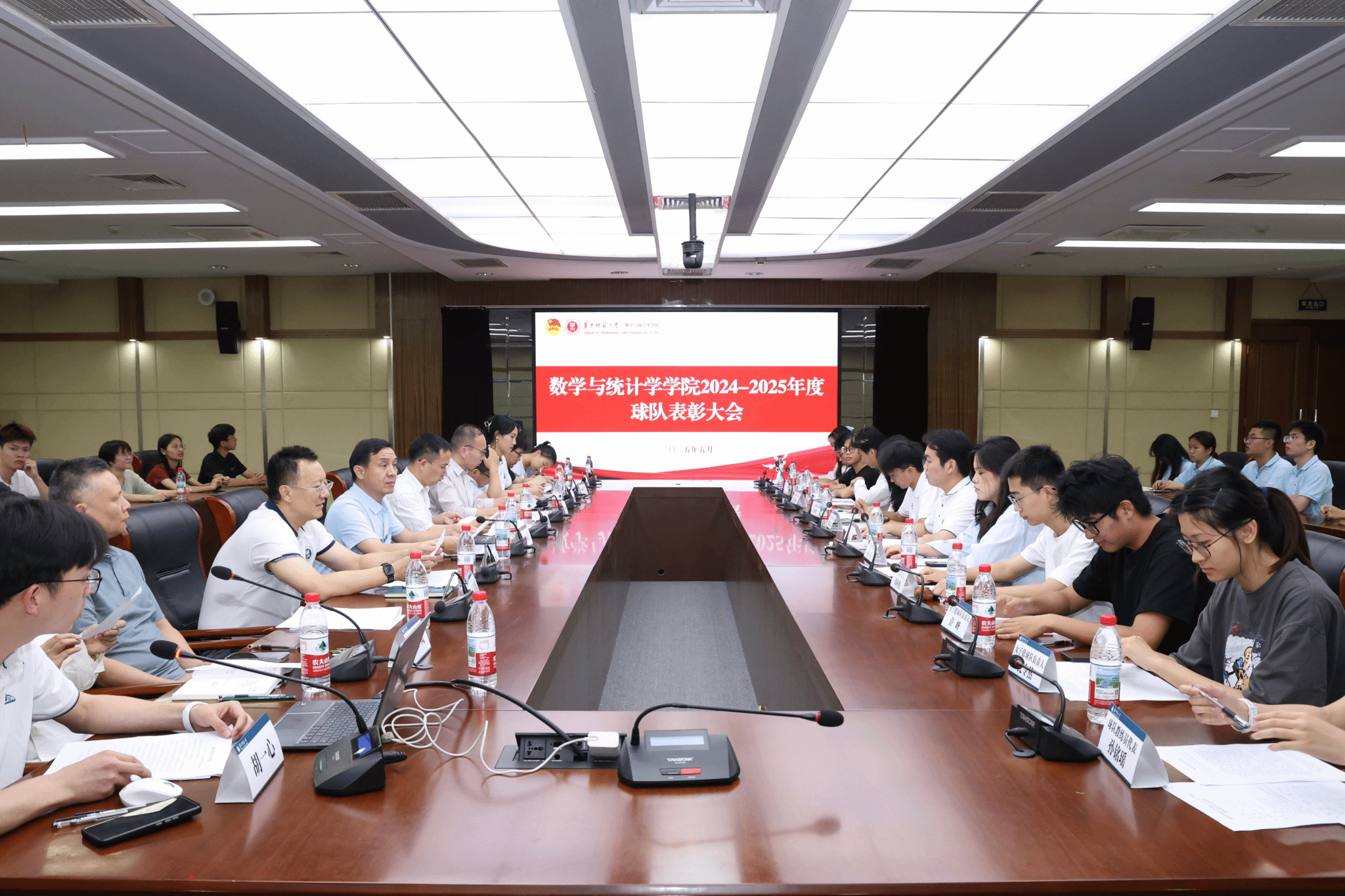华大青年讯(通讯员 田爽)5月26日中午,数学与统计学学院(以下简称“数统学院”)2024-2025年度球队表彰大会在逸夫国际会议中心二楼会议室召开。数统学院党委书记刘成竹,院长郭玉劲,院党委副书记周彦、杨可军,副院长左国新、李波,全体本研专兼职辅导员、学生会体育部及各球队教练、队员参与会议。本次会议由院团委副书记胡一心主持。
