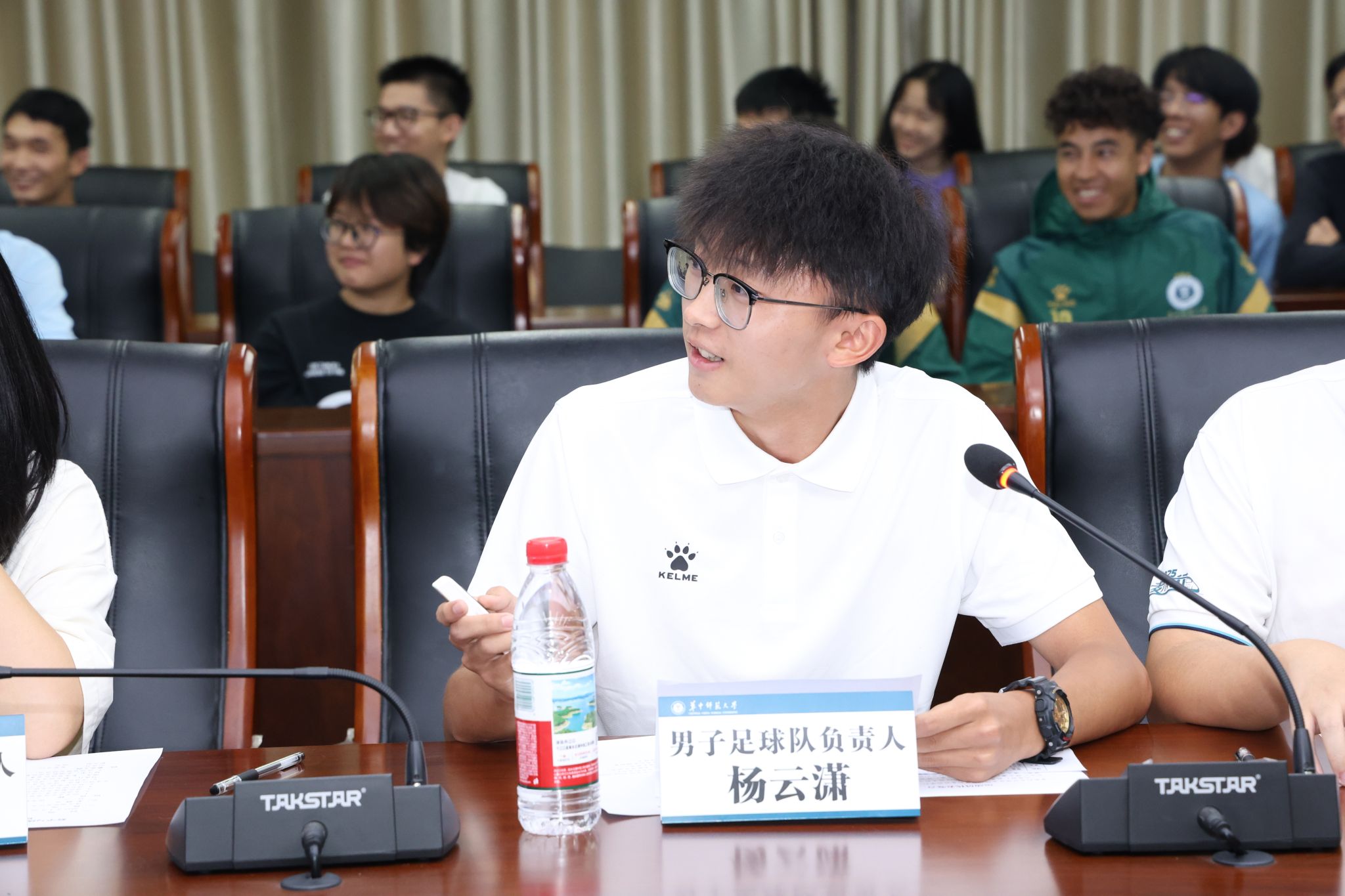 各球队负责人依次进行球队介绍。赛场上的每一次突破、每一份荣誉,既源于队员们的拼搏与坚持,也离不开场下师生的呐喊助威。展望未来,各球队将继续秉持热爱、团结奋进,以更高的目标激励自我,为学院的体育事业再添荣光。