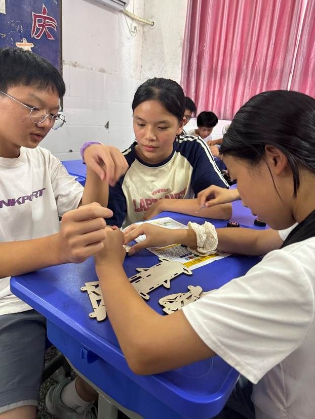 7月16日上午,实践队员张富江组织了一堂以“提升动手能力,感悟中华智慧”为主题的趣味手工课。课堂伊始,张富江以北京故宫为引,向同学们系统介绍了中国传统建筑的精粹——榫卯结构。随后,他为各小组分发手工工具包,指导学生们动手分组拼装榫卯模型。在亲身体验与协作实践中,同学们不仅对榫卯结构的精妙魅力有了直观深刻的认识,更有效锻炼了动手实践与团队协作能力
