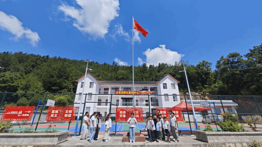 爱国精神如炬,点亮成长方向。7月28日上午,柏杨坪村一周一度的升旗仪式在“筑梦体育人”实践队的带领下举行,孩子们分成两队从左右注视着国旗,国旗升起,国歌齐唱,爱国之声萦绕柏杨坪村的升旗台前。国旗升顶后,学员杨易玲拿出准备好的稿子开始了国旗下演讲,爱国教育是孩子们学习的根本,当红色精神沁润孩子们的心灵,红色的基因与人文精神也早已在孩子们的心中播下传承的种子,这个夏天,育人育才的温暖,仍在柏杨坪村延续。