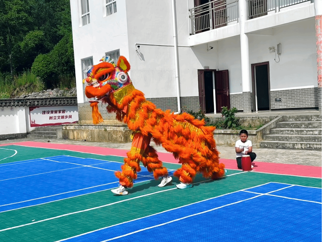 雄狮点睛,步步高升。在队长王翦激情的致辞中,一头金红相间的狮子登场。它顶着缀满绒毛的狮头,眼睛随着鼓点灵活眨动,栩栩如生。随着鼓点声逐渐密集,狮子做出“行拜礼”的样子。三拜完毕,只见狮子猛然跃起,落地后,嘴中吐出一张“学业有成”的横幅,台下掌声连绵不断。