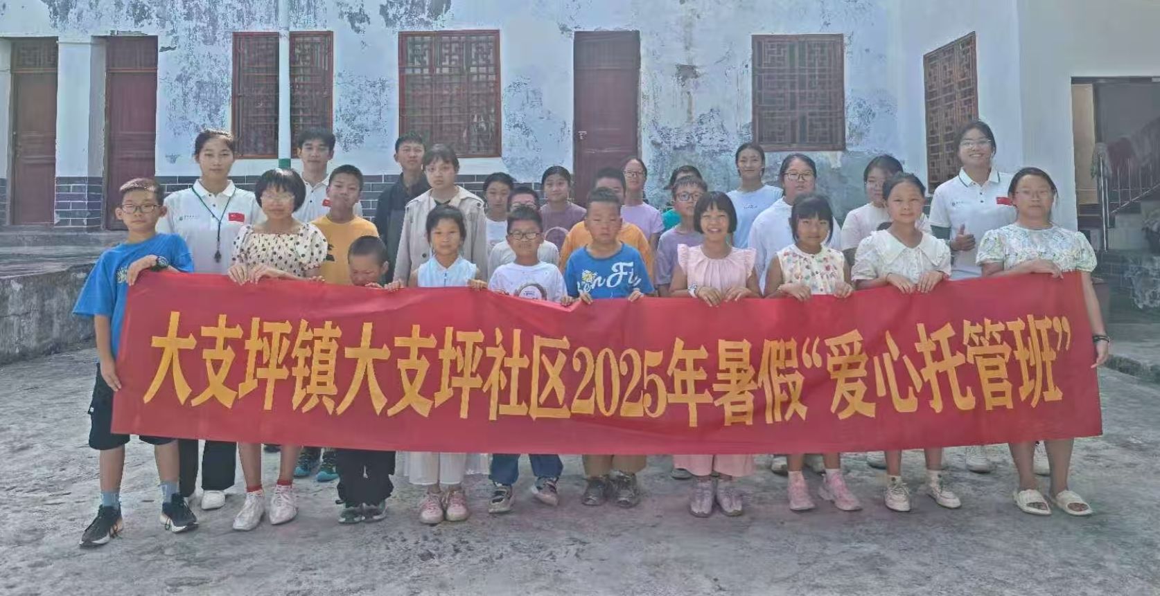 图1 大支坪社区实践队员与学生们的合照