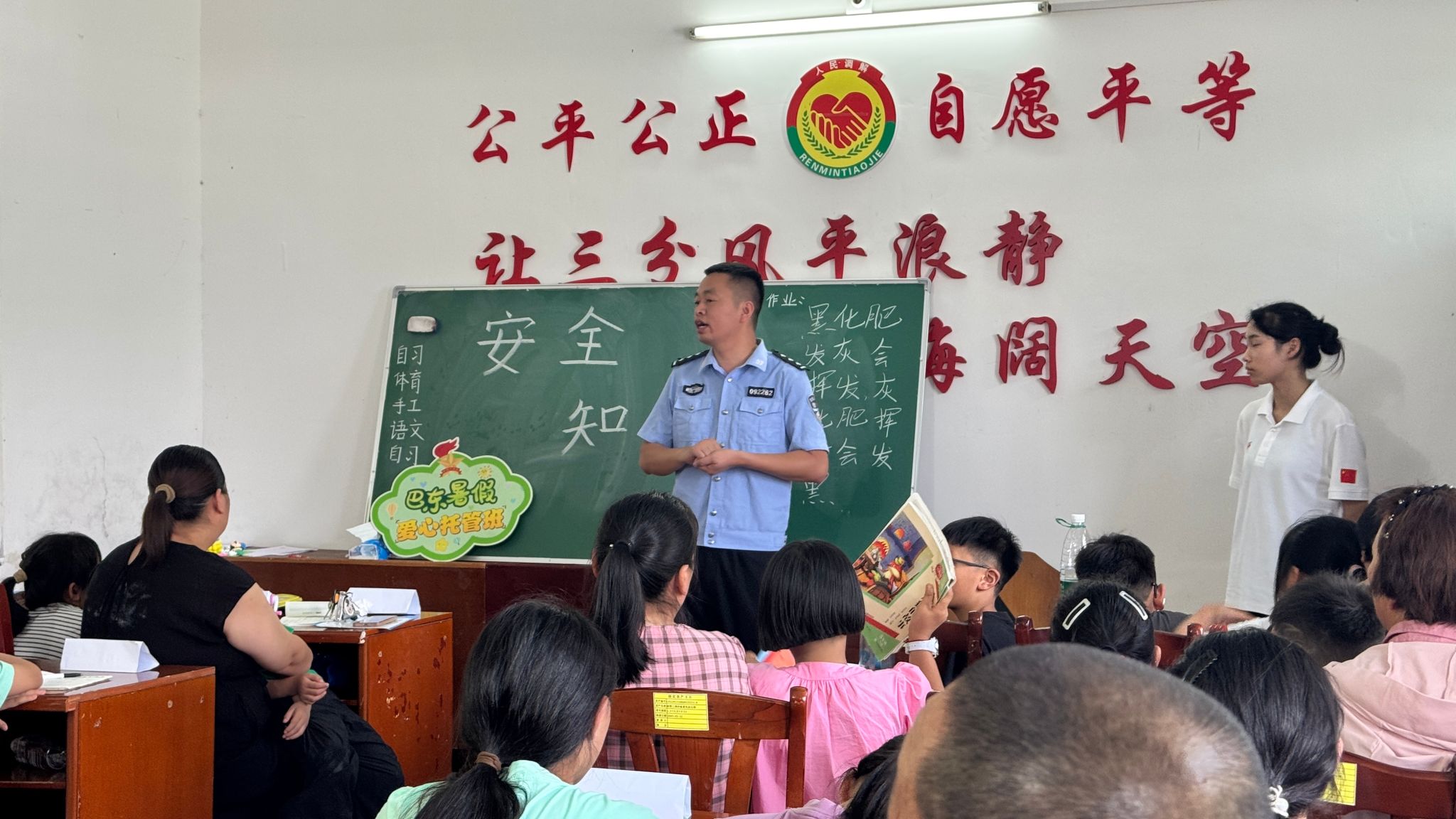警师共护童心,安全筑梦同行。7月15日上午,实践队联合当地公安局进行的安全知识宣讲,让孩子们受益匪浅。民警们用生动案例,为孩子们剖析安全隐患,支教老师配合着引导互动,从防溺水的关键要点,到交通安全的日常守护,再到防范网络诈骗的小妙招,一个个安全知识以润物细无声的方式是孩子们牢记于心。这份共同的守护也将持续接力,为孩子们的逐梦之旅筑牢安全底色 。