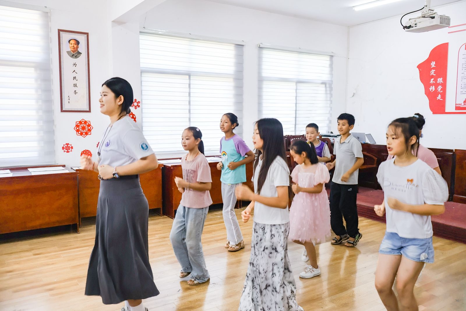 三溪村文艺汇演以全体学员带来的朗诵《黄河颂》和合唱《世界赠予我的》拉开序幕。“你用爱的手臂,为我遮风雨”,《最亮的星星》《爸爸妈妈》送给世上最爱的亲人。武术班学员带来整齐划一、气势磅礴的武术表演。白霓队队员与学员共舞《一年级》和《你最最最重要》,活泼欢快的舞步脚尽显青春的活力,彰显师生间的深厚情谊。
