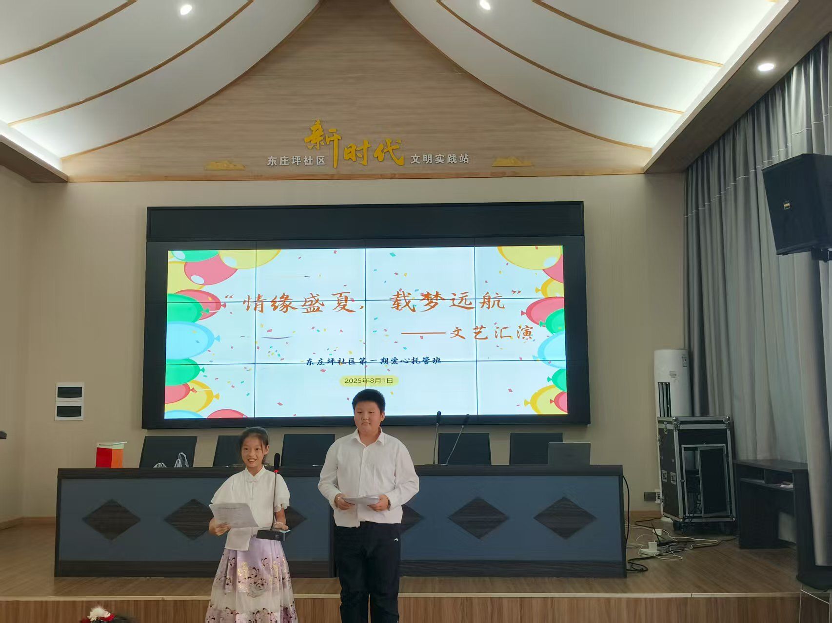 在东庄坪社区,主题为“情缘盛夏,载梦远航”的暑期爱心托管班结营仪式顺利举行。这场为期近一个月的夏日相聚,在才艺展演、互动游戏与颁奖典礼中画上圆满句点。