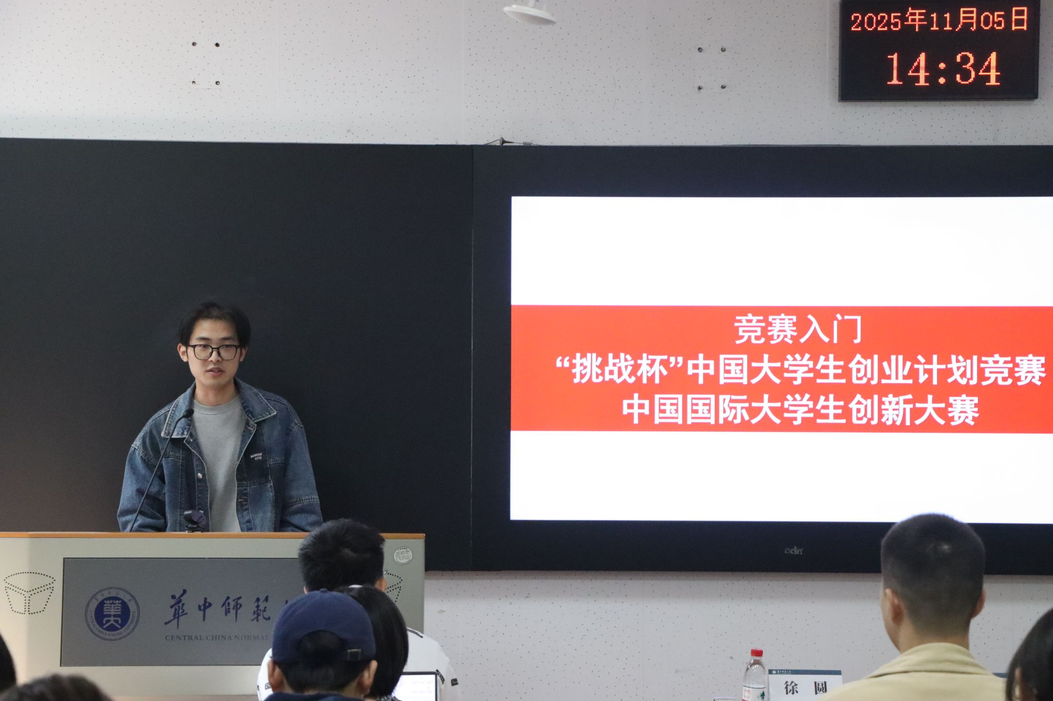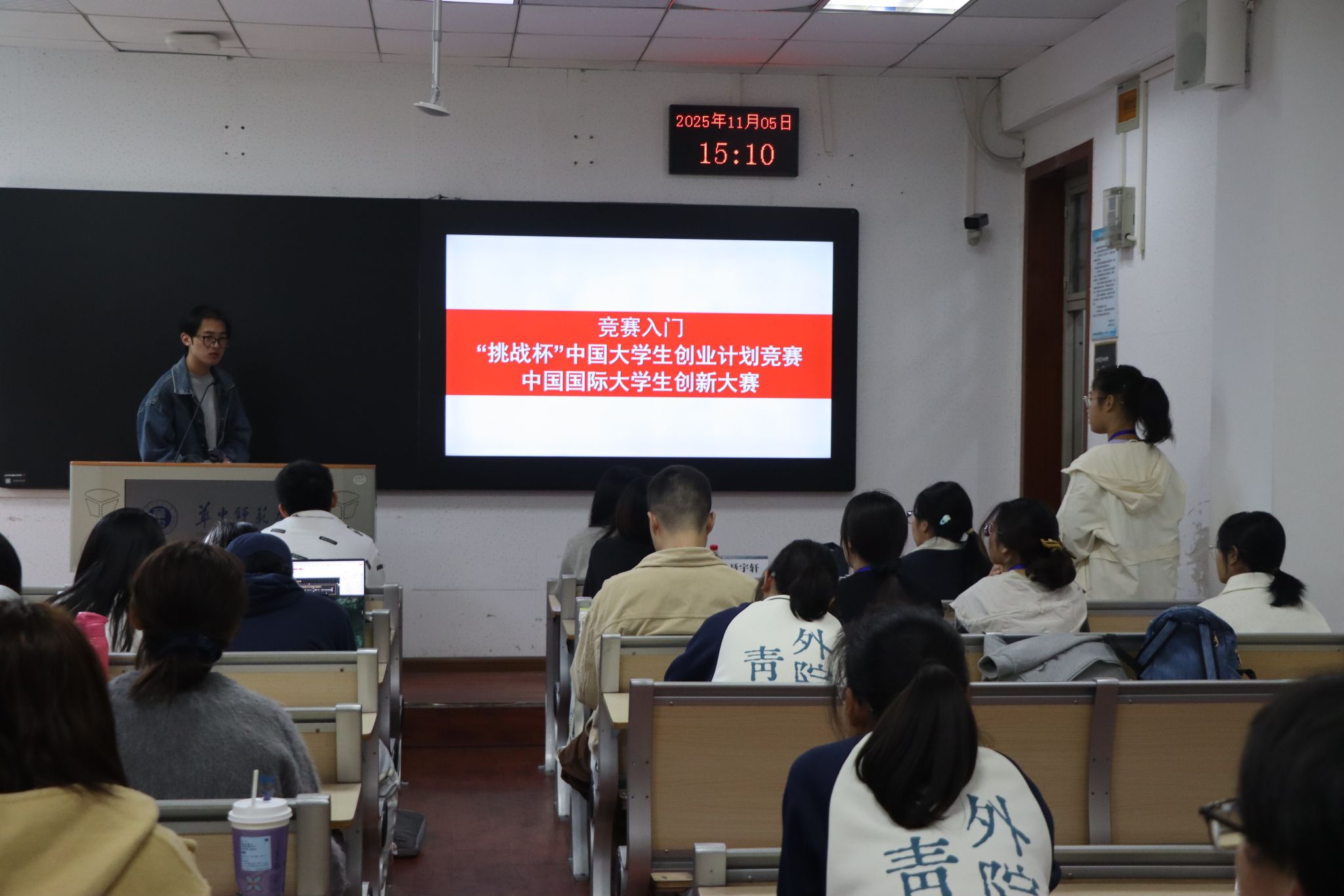 华大青年讯(通讯员 吴妍玮 魏梦丹)为引导外院学子把握科技前沿趋势,推动专业素养与创新实践深度融合,11月5日下午,外国语学院(以下简称“外院”)于3216教室成功举办“智启新程,创享未来”创新创业训练营主题活动。外国语学院团委副书记徐圆出席本次活动,公共管理学院行政管理专业2022级本科生聂宇轩作为主讲嘉宾进行经验分享。活动由2025级西语系李汶奚主持。