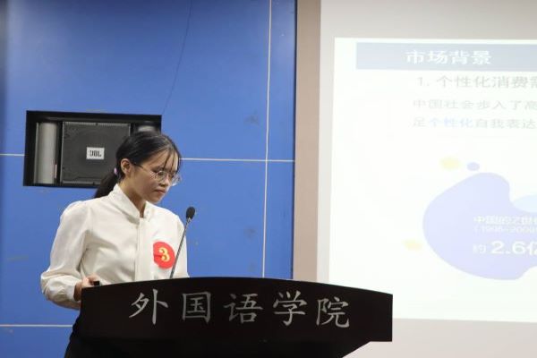 在许梧桐向在场嘉宾介绍比赛规则后,十四支队伍依次进行汇报。分为三个板块,创新创业计划类、互联网+类、学术论文与调研报告类。创新创业计划与互联网+类侧重于从项目背景、项目简介、 市场分析、发展规划、项目效益等多方面进行阐述。其中,钟诗敏所在的队伍提出“捏脸式自助设计洛丽塔配饰店——Ada艾达手作”这一概念,意在让每个人都成为设计师。此外,他们以捏脸换装小游戏为灵感发明了一款可以捏配饰的APP,让客户为自己设计洛丽塔衣服。以期在缩小与客户沟通成本的同时,满足客户的个性化需求,从而提高产能。该项目已初步实践,有较强的市场潜力。针对这一组的展示,丁玉斌指出:“创意十分新颖。但在打造品牌效应的同时也要注意凸显品牌的价值。”