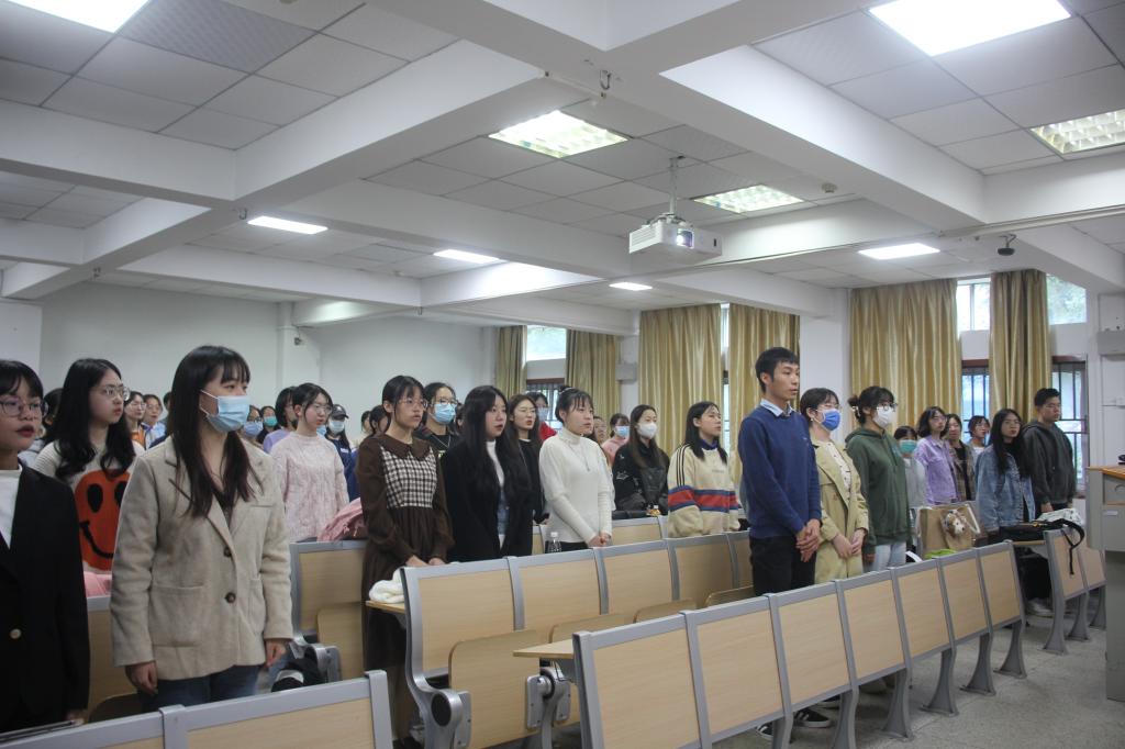 本次团支书联席会议分为“奏唱团歌”、“青年大学习情况公示”、“团员发展答辩”三个环节。团歌的演唱结束后,黄薪妃汇报了开学以来第二、三期青年大学习的完成情况,并对完成情况良好的团支部提出了表扬。她表示,青年大学习是青年大学生学习典型模范,提高自身综合素养的重要途径,各支部团支书应督促支部成员积极参与主题团课学习,鼓励支部成员用实际行动践行青年使命,将支部建设工作落到实处。