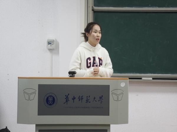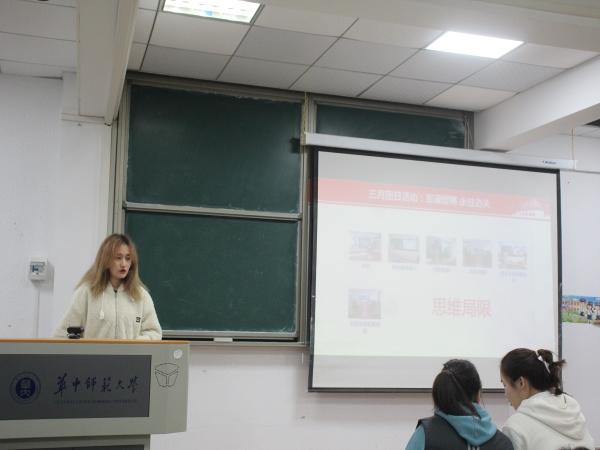 随后,英语系1902支部团支书季可人进行了活力团支部经验分享。她分别从“支部情况”、“寻找特色”、“提升支部活力”以及“新闻宣传”四个方面展开了经验分享。在简单介绍支部基本情况后,她强调了团支部特色建设、提升支部活力的重要性。她指出:“团支部建设可以结合时代特点、语种特点、师范专业特点来进行建设。同时也要积极创新团日活动形式,建设富有活力的团支部。”