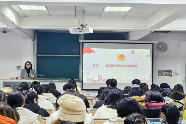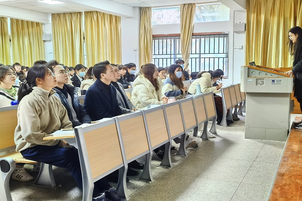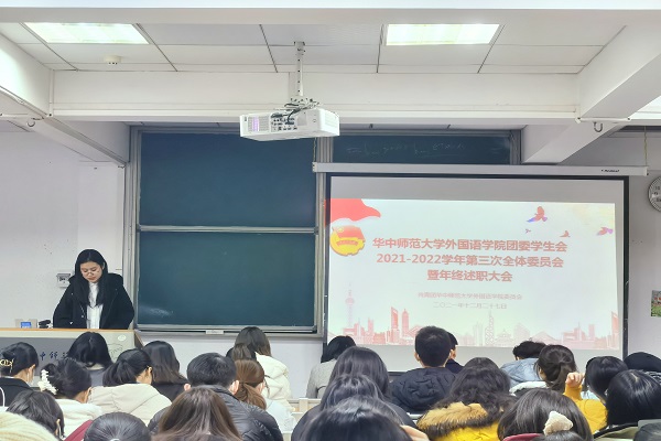 华大青年讯(通讯员 卢怡宁 陈雨)为促进团委学生会工作顺利开展,提升营员们对学生工作的参与感与认同感,12月27日中午,外国语学院团委学生会2021-2022学年第三次全体委员会暨年终述职大会于3218教室召开。出席本次活动的嘉宾有外国语学院党委副书记杨灵珍、外国语学院团委书记兼2020级英语系辅导员牛静、2018级英语系辅导员李晨龙、2018及2020级小语种辅导员潘英子、2019级英语系辅导员邱领、2019级小语种辅导员成雯、2021级英语系辅导员王莉、2021级小语种辅导员徐圆。会议主持人由办公室主任刘睿蕊担任。