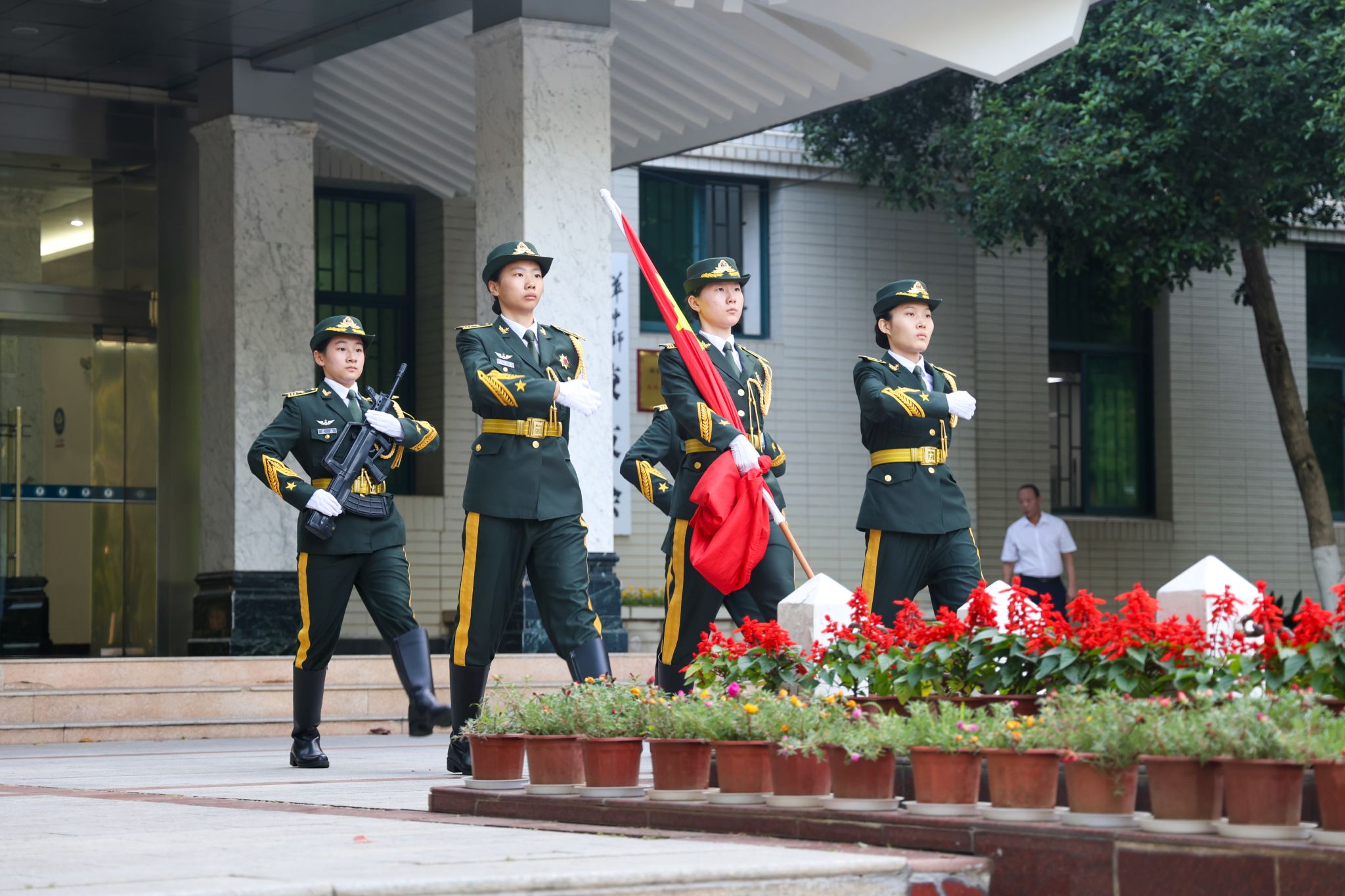 随着晨曦洒满校园,参加升旗仪式的全体师生准时到达指定地点并整队完毕。升旗仪式正式开始,国旗护卫队迈着整齐的步伐,眼神坚定地护送着鲜艳的五星红旗走向升旗台。在激昂的国歌声中,五星红旗缓缓升起,迎风飘扬。全体师生肃立行注目礼,凝视国旗冉冉升起,共同表达对祖国的无限敬意和深沉热爱。