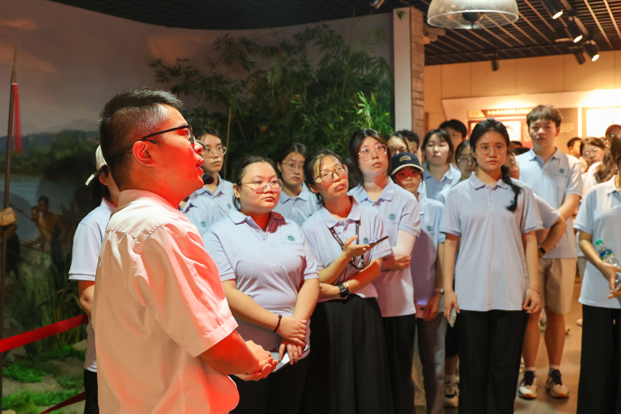 华大青年讯(通讯员 裴郅玮 黄思意)深植家国情怀、汲取奋进力量,7月5日,华中师范大学外国语学院语思实践队江西分队走进江西省赣州市上犹革命陈列馆,展开了一场红色寻访之旅。华中师范大学外国语学院副院长王佳,华中师范大学外国语学院团委书记吴波,上犹中学南校区包联办主任赖婷、高三14班班主任、校办副主任奚春玲等老师带队出行,全体实习实践学生共三十余人参与实践。