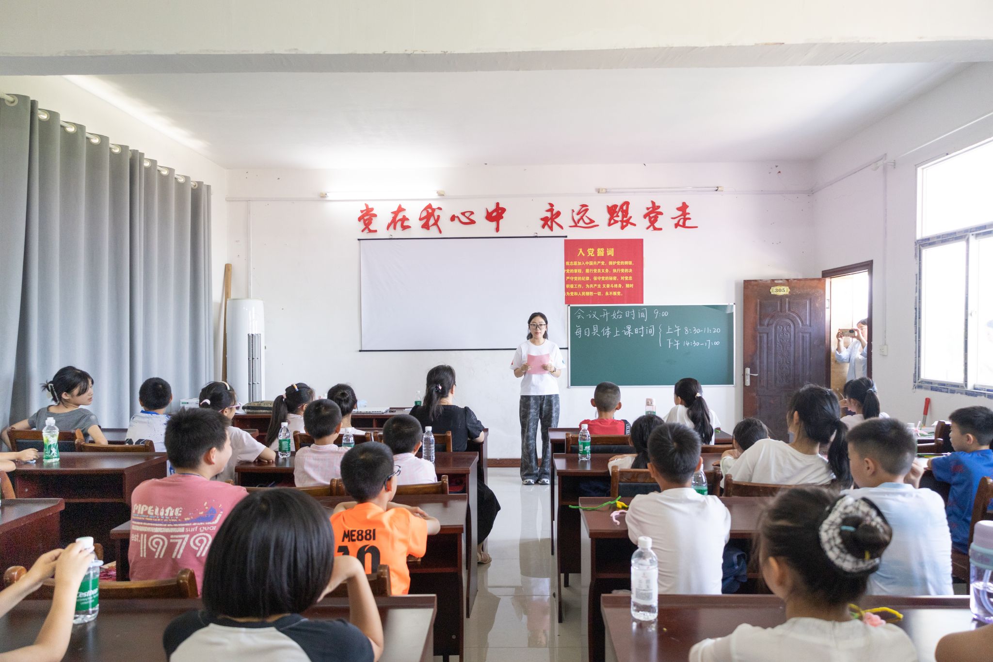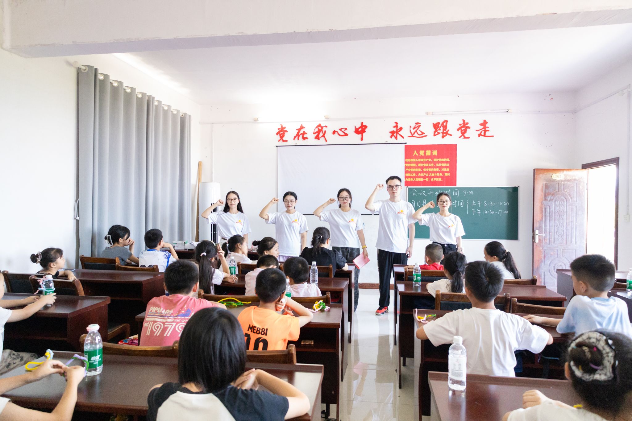 最后,全体志愿者面向团旗,高擎右手,庄重宣誓。未来,白霓队队员将以坚定信念和实干精神,推动本次支教活动深入开展,积极践行志愿服务精神,助力乡村青少年的健康成长和国家教育事业的健全发展。